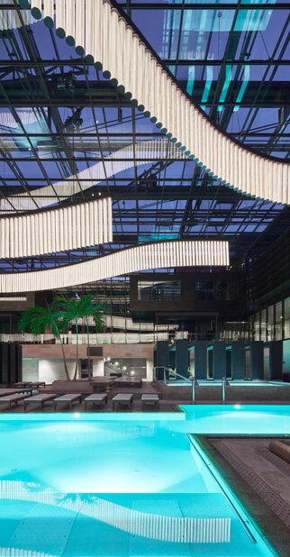 Find out how we are creating a new atmosphere in the historic thermal baths at Terme Merano with our customised light sculpture that simulates waves and saves around 88% energy compared to the previous halogen solution.