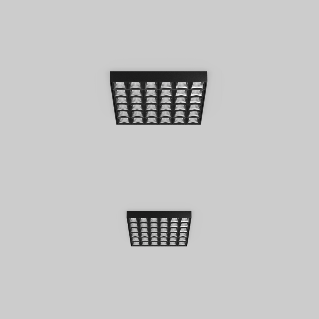 Quadratischer Halbeinbaustrahler aus Aluminium; Oberfläche Gehäuse pulverbeschichtet; bestückt mit 2x2 / 3x3 / 4x4 / 6x6 Optiken; geeignet für Deckenstärken von 1-25 mm; werkzeuglose Montage in rundem Deckenausschnitt mittels Drahtfedern; hochwertiger Reflektor mit mikrofacettierter, aluminiumbedampfter Oberfläche; eingesetzte Linsen mit medium oder wide flood Strahlungscharakteristik; energieeffiziente LEDs mit sehr guter Farbwiedergabe; externer Konverter für Deckeneinwurf