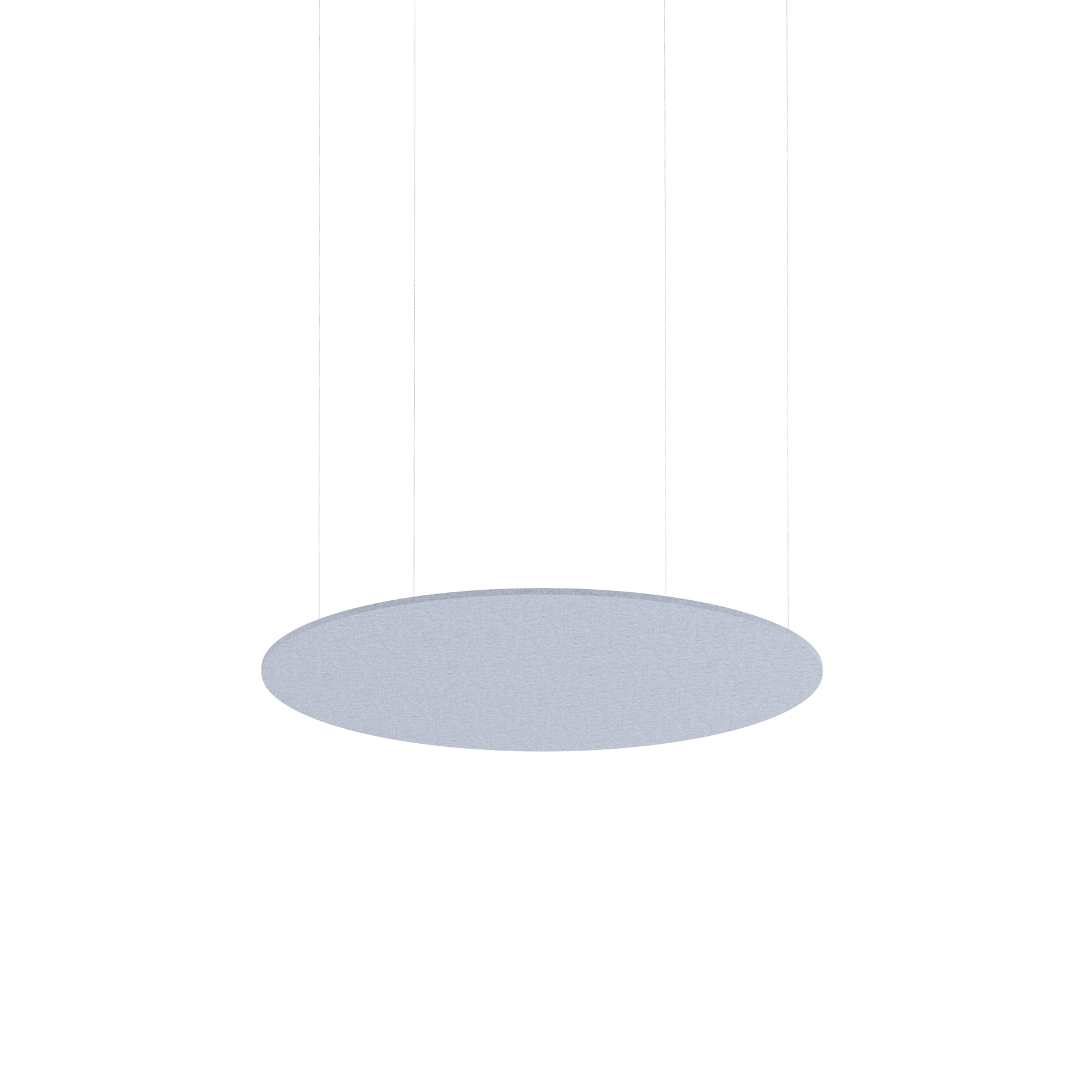 Akustikelement aus hochwertigem, selbsttragendem PET-Filz mit schallabsorbierenden Eigenschaften, bestehend aus mindestens 50 % post-consumer recyceltem PET; Bauform rund; optisch und haptisch hochwertige Oberfläche, Marble grey; Farbabweichungen möglich; Absorption des Direktschalls und des von der Decke reflektierten Schalls; dadurch hohe akustische Performance; abgependelt mit 1500mm Seilabhängung; werkzeuglose Höhenverstellung am Akustikelement;