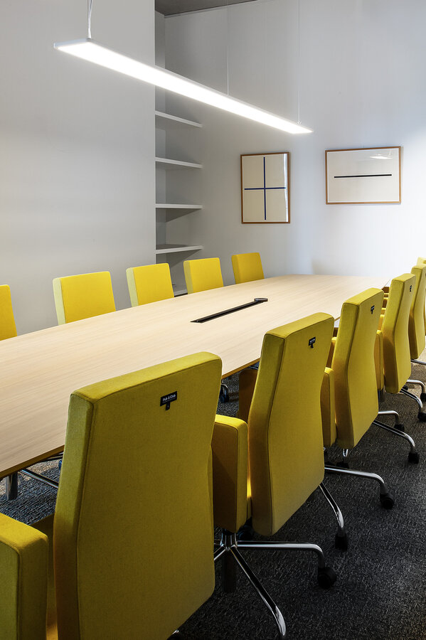 Rechteckiger Leuchtenkörper aus Aluminium mit abgerundeten Kanten; extrem flache Bauform (nur 15 mm); Oberfläche pulverbeschichtet; werkzeuglos höhenverstellbare 1500 mm Seilabhängung; inkl. Einspeiseleitung; direkte Lichtverteilung durch LGP-Body (Light-Guiding-Prism); seitlich eingekoppeltes Licht durch Lasergravur nach unten gelenkt; Indirektlichtanteil mit eigenen Platinen für erhöhten Lichtstrom und maximale Deckenaufhellung; absolut homogene Ausleuchtung; energieeffiziente LEDs mit sehr guter Farbwiedergabe; Baldachin mit 2 Kabelöffnungen und Steckklemme für Weiterverdrahtung