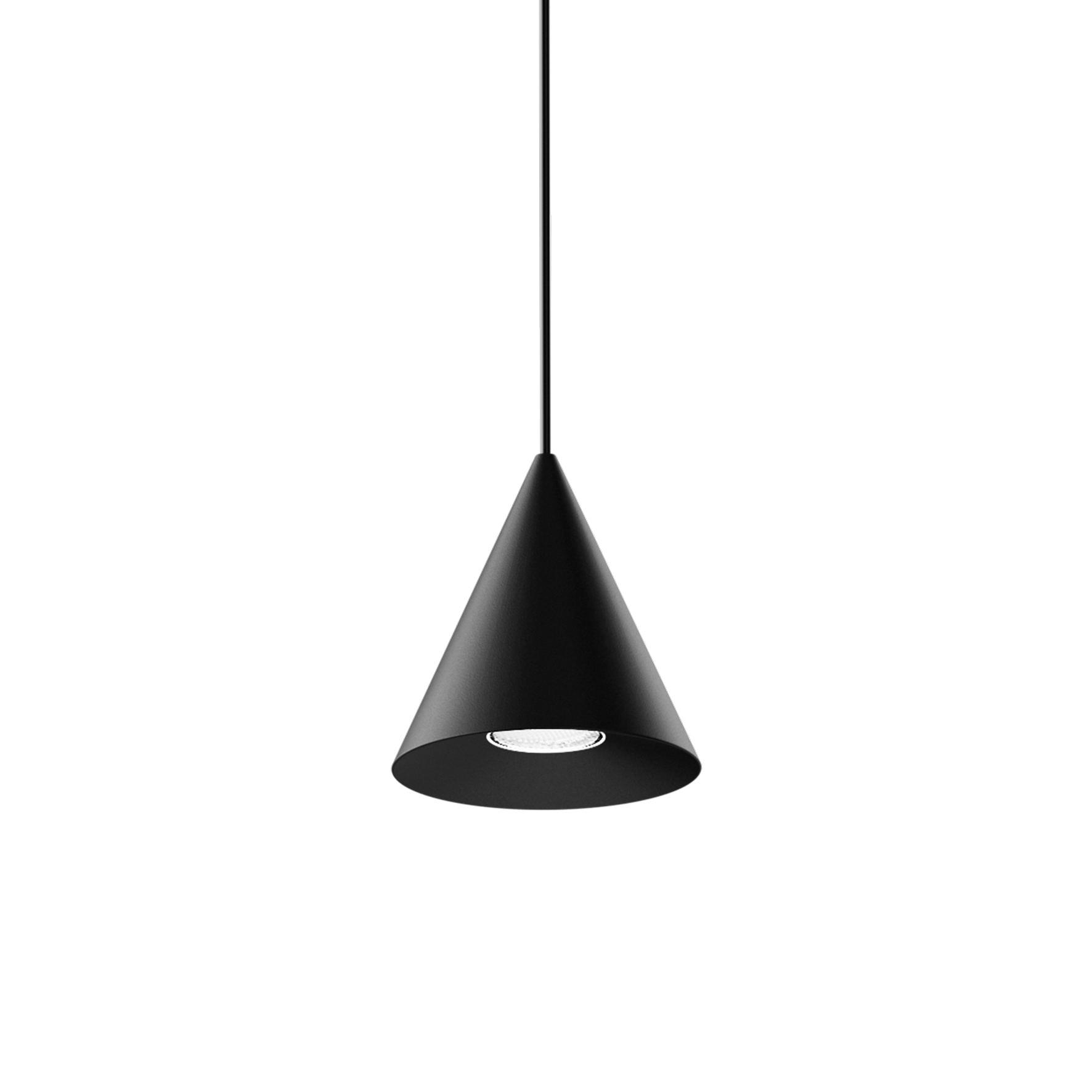 Dekorativer Pendelleuchten-Lichteinsatz aus Aluminium; kegelförmiges Shade; Oberfläche Tiefschwarz pulverbeschichtet; Lichteinsatz mittels Magnethalter+Verriegelung werkzeuglos einsetz- und verschiebbar; Spannungsversorgung über MOVE IT System Stromschienenprofil; Hot Plug-Schutz; abgependelt mit 3000mm Pendelabhängung, inkl. Einspeiseleitung (Tiefschwarz), beliebig kürzbar; passive Kühlung der LEDs durch optimierte Kühlkörpergeometrie; mit COB (Chip on Board) Technologie für höchste Effizienz; keine Bildung von Mehrfachschatten; Lichtfarbe 2700 K; ≤ 3 SDCM (initial MacAdam); CRI ≥ 90; min. 90% des Lichtstromes nach 50000 Betriebsstunden; energieeffiziente LEDs mit hoher Farbwiedergabe; Schutzart IP20; SK3; 48 V; nicht dimmbar; nicht austauschbare Lichtquelle; Betriebsgerät durch autorisierte Fachleute austauschbar;