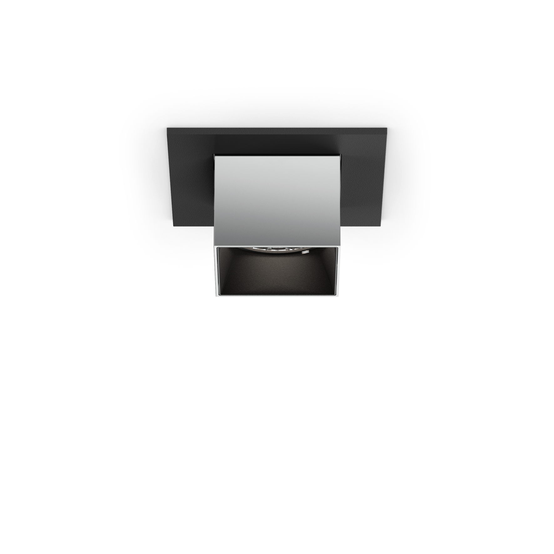 Quadratisches Strahlerelement aus Aluminium; Oberfläche Chrom; werkzeuglose Montage im Montageset durch patentiertes Kugelschnappsystem; Einbauleuchte mit umlaufendem Rand Tiefschwarz; geeignet für Deckenstärken von 2-25 mm; Strahlerelement werkzeuglos höhenverstellbar: deckenbündig, 25 mm oder 35 mm herausragend; passive Kühlung der LEDs durch optimierte Kühlkörpergeometrie; mit COB (Chip on Board) Technologie für höchste Effizienz; keine Bildung von Mehrfachschatten; Lichtfarbe 3000 K; Binning initial MacAdam ≤ 3 SDCM; CRI ≥ 90; min. 85% des Lichtstromes nach 50000 Betriebsstunden; energieeffiziente LEDs mit hoher Farbwiedergabe; hochwertiger, aluminiumbedampfter Reflektor mit Facettenoptik; präzise Abstrahlcharakteristik mit 8° Ausstrahlwinkel; gute Entblendung durch zurückversetzte Lichtpunktebene; optischer Aufsatz ist als Zubehör erhältlich; Zubehör wird separat angeführt; Schutzart IP20; PC2 220-240V; inkl. DALI-2 Konverter; Konverter sekundärseitig verdrahtet; Lichtquelle durch autorisierte Fachleute austauschbar; Betriebsgerät durch autorisierte Fachleute austauschbar;