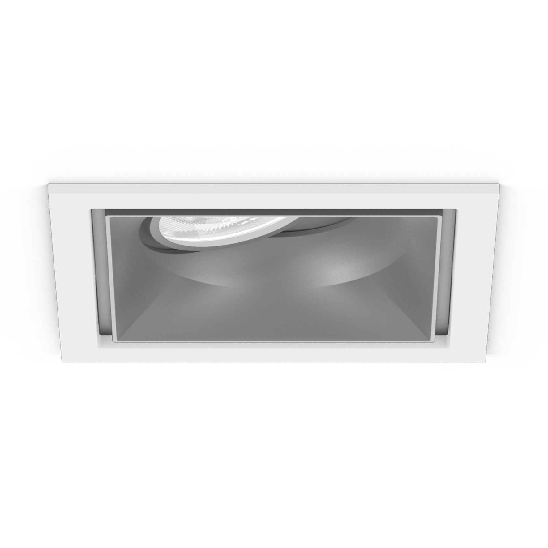 Einbaustrahler quadratisch aus Aluminiumdruckguss; 1-flammig; Oberfläche Matt Silber; 30° schwenkbar; werkzeuglose Montage im Montageset durch patentiertes Kugelschnappsystem; quadratisches Einbaugehäuse; mit umlaufendem Rand Verkehrsweiß; geeignet für Deckenstärken von 2-25 mm; passive Kühlung der LEDs durch optimierte Kühlkörpergeometrie; mit COB (Chip on Board) Technologie für höchste Effizienz; keine Bildung von Mehrfachschatten; Lichtfarbe 3000 K; Binning initial MacAdam ≤ 2 SDCM; CRI ≥ 90; min. 80% des Lichtstromes nach 50000 Betriebsstunden; energieeffiziente LEDs mit hoher Farbwiedergabe; inkl. hochwertiger Linsenoptik; präzise Abstrahlcharakteristik mit 31°x33° Ausstrahlwinkel; UGR ≤ 16; bildschirmtaugliche Arbeitsplatzleuchte nach DIN EN 12464-1; Leuchtdichte über 65° ≤ 3000 cd/m²; Schutzart IP40 unten (oben IP20); SK2 220-240V; inkl. Konverter, nicht dimmbar; Anschlussdose für Weiterverdrahtung, 3-polig oder 5-polig, als Zubehör erhältlich; Zubehör wird separat angeführt; Lichtquelle durch autorisierte Fachleute austauschbar; Betriebsgerät durch autorisierte Fachleute austauschbar;
