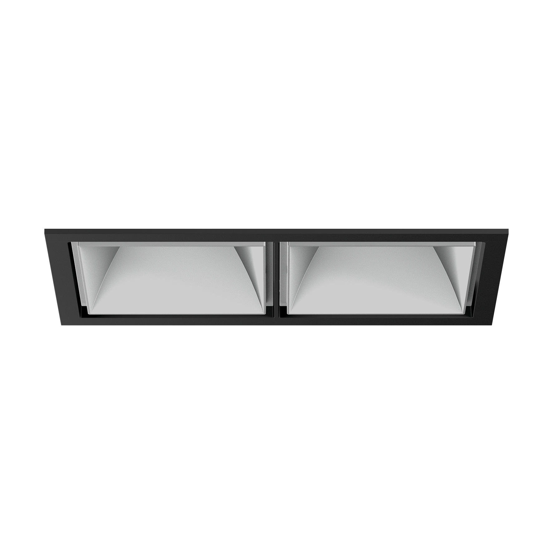 Einbaustrahler quadratisch aus Aluminiumdruckguss; 2-flammig; Oberfläche Matt Silber; werkzeuglose Montage im Montageset durch patentiertes Kugelschnappsystem; rechteckiges Einbaugehäuse; mit umlaufendem Rand Tiefschwarz; geeignet für Deckenstärken von 2-25 mm; passive Kühlung der LEDs durch optimierte Kühlkörpergeometrie; mit COB (Chip on Board) Technologie für höchste Effizienz; keine Bildung von Mehrfachschatten; Lichtfarbe 1800 - 3000 K colour warm dimming; ≤ 3 SDCM (initial MacAdam); CRI ≥ 90; min. 90% des Lichtstromes nach 50000 Betriebsstunden; energieeffiziente LEDs mit hoher Farbwiedergabe; inkl. hochwertiger Linsenoptik; präzise Abstrahlcharakteristik mit 34° Ausstrahlwinkel; Schutzart IP40 unten (oben IP20); SK2; 220-240 V; inkl. DALI-2 Konverter; Anschlussdose für Weiterverdrahtung, 3-polig oder 5-polig, als Zubehör erhältlich; Zubehör wird separat angeführt; Lichtquelle durch autorisierte Fachleute austauschbar; Betriebsgerät durch autorisierte Fachleute austauschbar;