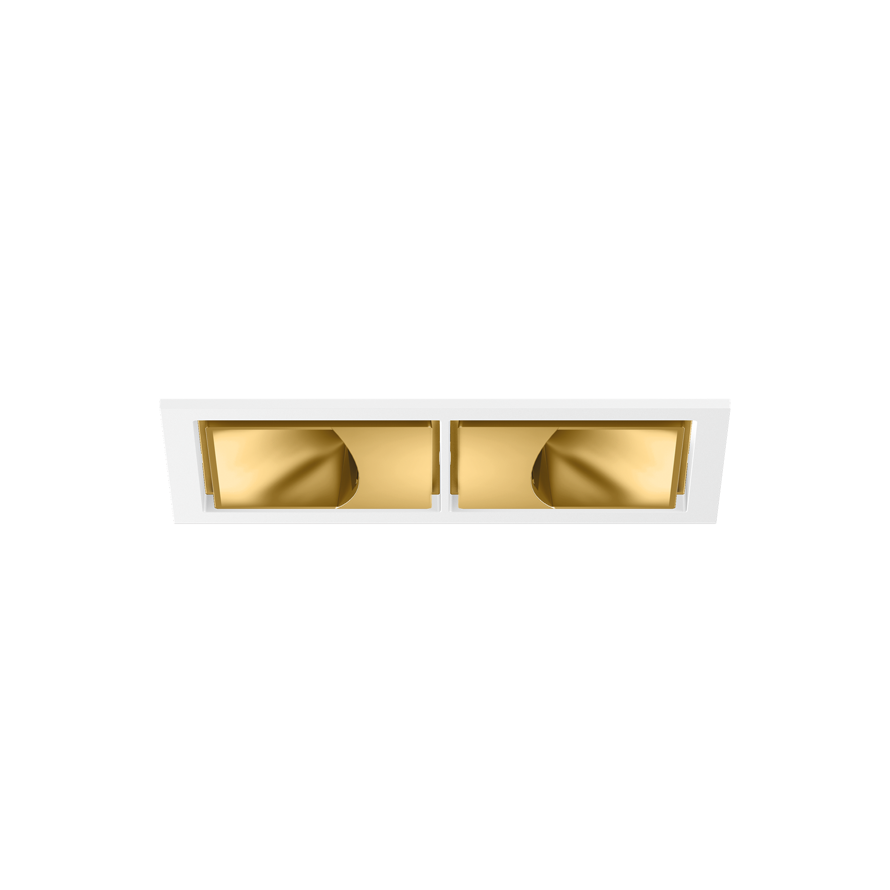 Einbaustrahler quadratisch aus Aluminiumdruckguss; 2-flammig; Oberfläche Gold; werkzeuglose Montage im Montageset durch patentiertes Kugelschnappsystem; rechteckiges Einbaugehäuse; mit umlaufendem Rand Verkehrsweiß; geeignet für Deckenstärken von 2-25 mm; passive Kühlung der LEDs durch optimierte Kühlkörpergeometrie; keine Bildung von Mehrfachschatten; Lichtfarbe 3000 K; Binning initial MacAdam ≤ 3 SDCM; CRI ≥ 90; min. 80% des Lichtstromes nach 50000 Betriebsstunden; energieeffiziente LEDs mit hoher Farbwiedergabe; mit speziell berechnetem, asymmetrischem Reflektor für homogene vertikale Beleuchtungsstärken; hochwertiger Reflektor mit mikrofacettierter, aluminiumbedampfter Oberfläche; SK2; 220-240 V; inkl. Konverter, nicht dimmbar; Anschlussdose für Weiterverdrahtung, 3-polig oder 5-polig, als Zubehör erhältlich; Zubehör wird separat angeführt; Lichtquelle durch autorisierte Fachleute austauschbar; Betriebsgerät durch autorisierte Fachleute austauschbar;