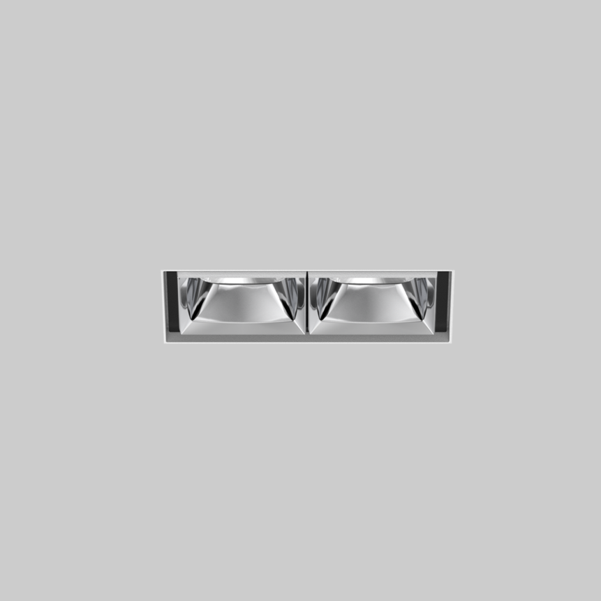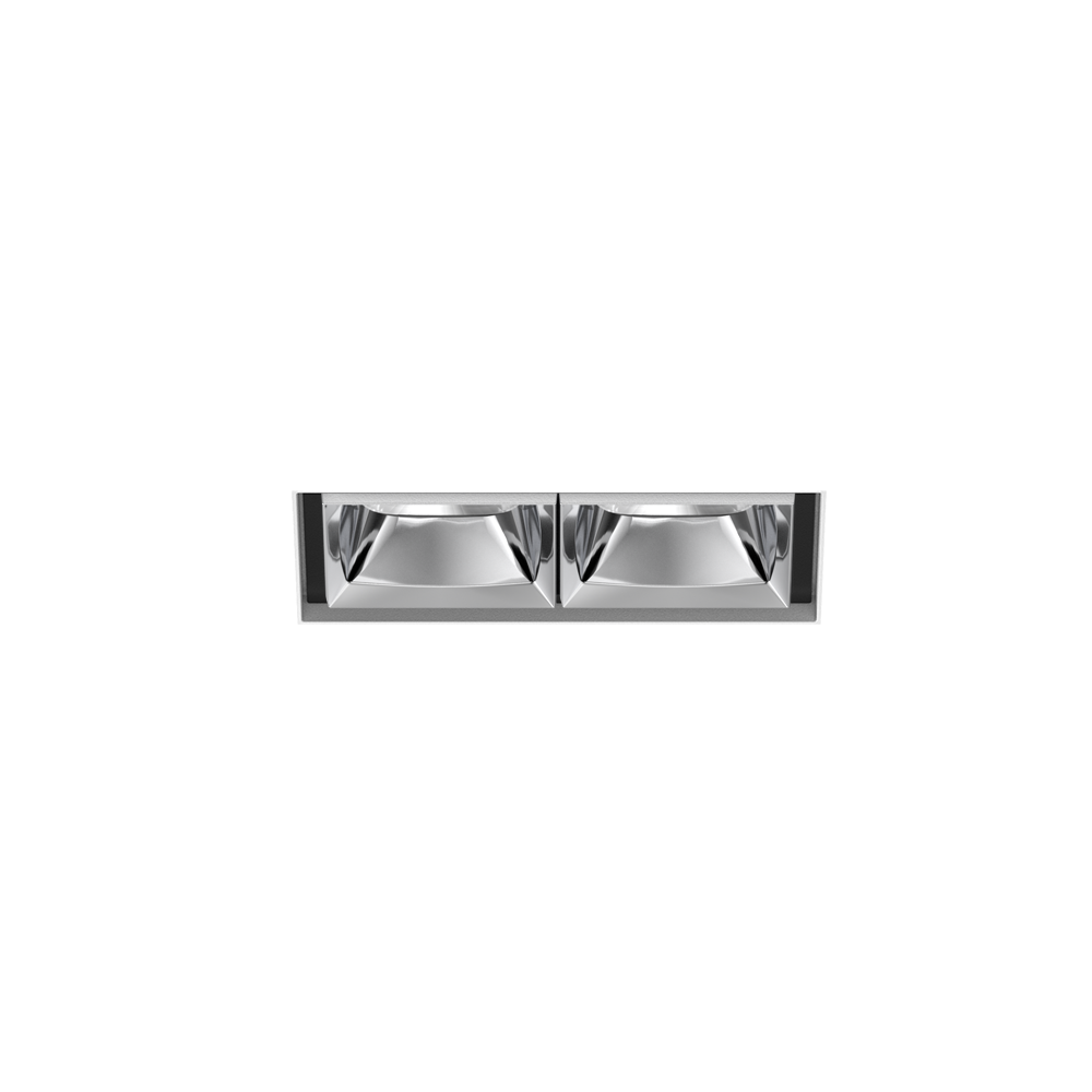 Rechteckiger Einbau-Multi-Downlight aus Aluminiumdruckguss; werkzeuglose Montage im Montageset durch patentiertes Kugelschnappsystem; rechteckiges Einbaugehäuse; für randlosen Einbau in Gipskartondecken; geeignet für Deckenstärken von 12,5/15/20/25 mm; bestückt mit zwei narrow medium round Optiken; symmetrische Lichtverteilung mit präziser Abstrahlcharakteristik, Ausstrahlwinkel 22°; hochwertiger Reflektor mit mikrofacettierter, aluminiumbedampfter Oberfläche; Reflektor chrom; passive Kühlung der LEDs durch optimierte Kühlkörpergeometrie; Lichtfarbe 4000 K; Binning initial MacAdam ≤ 3 SDCM; CRI ≥ 90; min. 90% des Lichtstromes nach 50000 h Lebensdauer; energieeffiziente High-Power-LEDs mit sehr guter Farbwiedergabe; Schutzart IP20; SK2; 220-240 V; inkl. DALI-2 Konverter; Anschlussdose für Weiterverdrahtung, 3-polig oder 5-polig, als Zubehör erhältlich; Zubehör wird separat angeführt; nicht austauschbare Lichtquelle; Betriebsgerät durch autorisierte Fachleute austauschbar; klirrfrei;