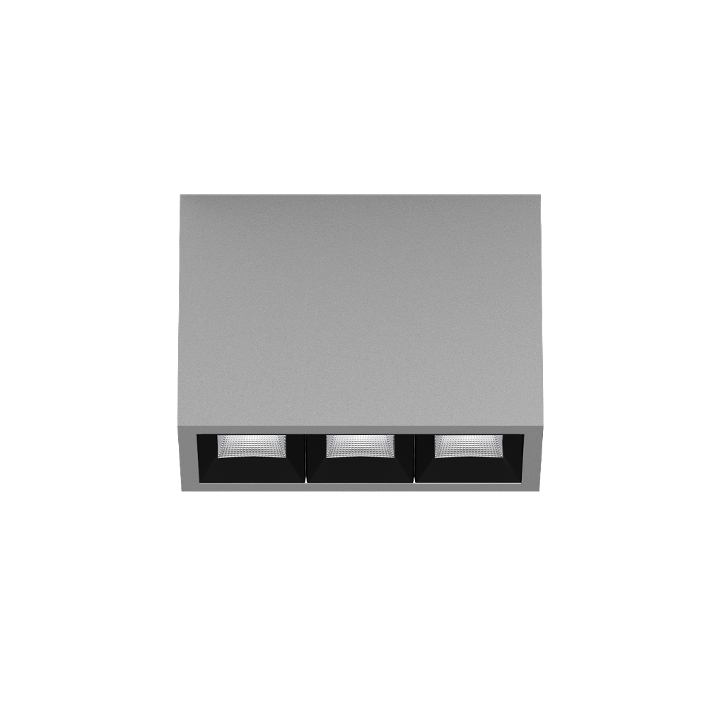 Rechteckiger Anbau-Multi-Downlight aus Aluminium; Leuchtenkörper mittels Verriegelung werkzeuglos auf Montageplatte aufsetzbar; Konverter im Leuchtenkörper integriert; Oberfläche Weiß Aluminium pulverbeschichtet; bestückt mit drei wide flood square Optiken; symmetrische Lichtverteilung mit präziser Abstrahlcharakteristik, Ausstrahlwinkel 71°; hochwertiger Reflektor mit mikrofacettierter, aluminiumbedampfter Oberfläche; Reflektor Schwarz; passive Kühlung der LEDs durch optimierte Kühlkörpergeometrie; Lichtfarbe 3000 K; ≤ 3 SDCM (initial MacAdam); CRI ≥ 90; min. 90% des Lichtstromes nach 50000 h Lebensdauer; energieeffiziente High-Power-LEDs mit sehr guter Farbwiedergabe; Schutzart IP20; SK1; 220-240 V; inkl. Konverter, nicht dimmbar; nicht austauschbare Lichtquelle; Betriebsgerät durch autorisierte Fachleute austauschbar; klirrfrei;