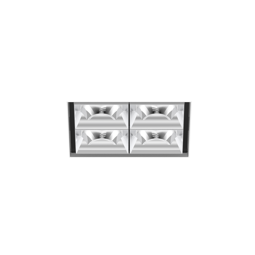 Quadratischer Einbau-Multi-Downlight aus Aluminiumdruckguss; werkzeuglose Montage im Montageset durch patentiertes Kugelschnappsystem; quadratisches Einbaugehäuse; für randlosen Einbau in Gipskartondecken; geeignet für Deckenstärken von 12,5/15/20/25 mm; bestückt mit vier wallwasher floor Optiken; asymmetrische Lichtverteilung mit präziser Abstrahlcharakteristik; hochwertiger Reflektor mit mikrofacettierter, aluminiumbedampfter Oberfläche; Reflektor chrom; passive Kühlung der LEDs durch optimierte Kühlkörpergeometrie; Lichtfarbe 3000 K; ≤ 3 SDCM (initial MacAdam); CRI ≥ 90; min. 90% des Lichtstromes nach 50000 h Lebensdauer; energieeffiziente High-Power-LEDs mit sehr guter Farbwiedergabe; Schutzart IP20; SK2; inkl. DALI-2 Konverter; Anschlussdose für Weiterverdrahtung, 3-polig oder 5-polig, als Zubehör erhältlich; Zubehör wird separat angeführt; nicht austauschbare Lichtquelle; Betriebsgerät durch autorisierte Fachleute austauschbar; klirrfrei;