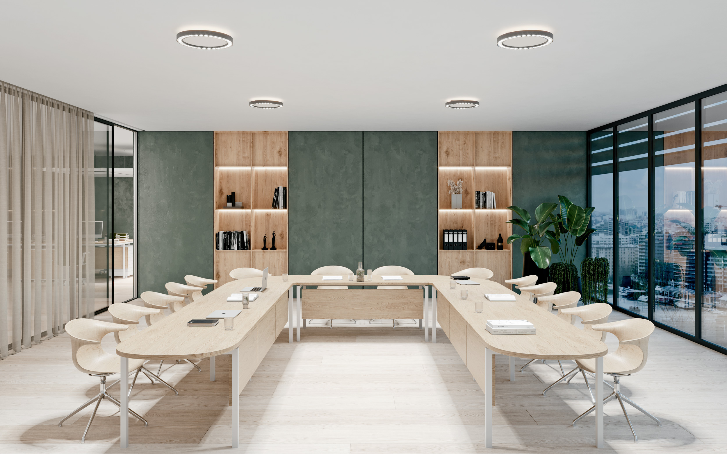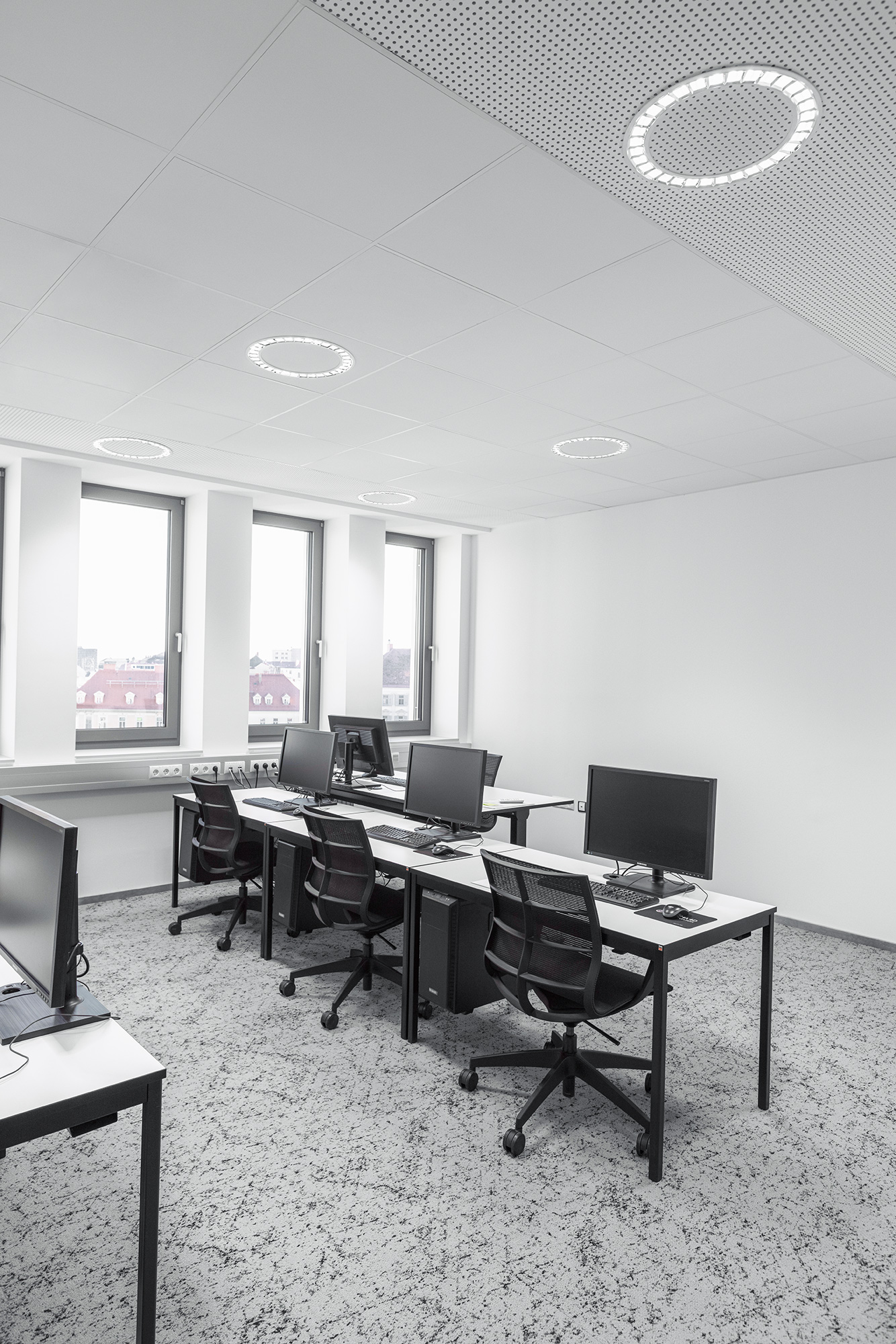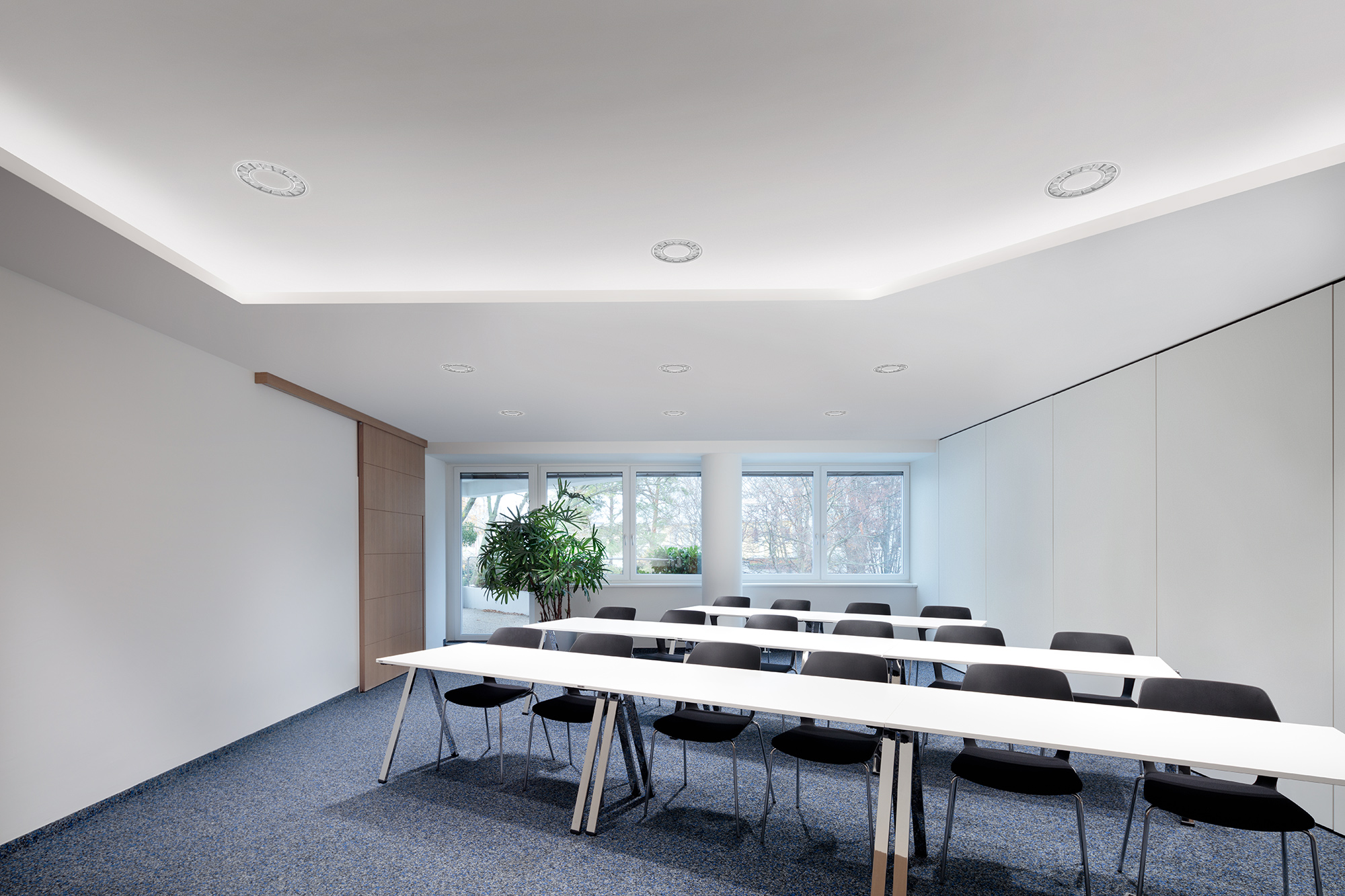 Great things often begin in small ways. The round MITA circle 160 opens up a multitude of new possibilities with a single extension in the centre: covers, sensors for smart lighting control, emergency lighting inserts, or SASSO 60 spotlights can be easily added as needed. Thus, the MITA circle 160 recessed becomes your lighting star and insets allrounder. The available adaptations can create lighting scenes for meeting rooms or lecture rooms in a dynamic or energy-efficient manner.