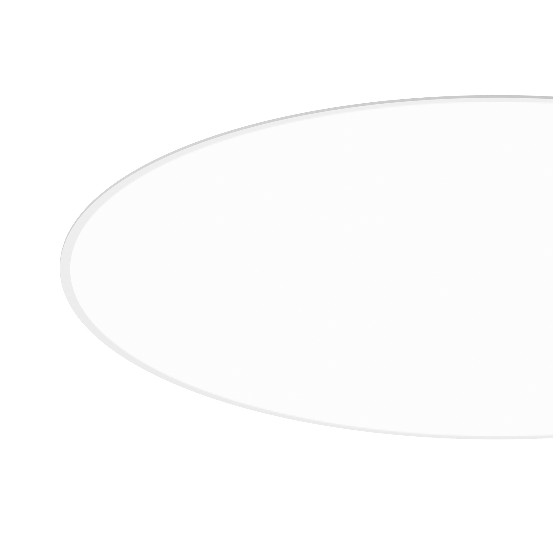 Round light fitting in aluminium; recessed light with wrap around edge; suitable for ceiling thickness of 10-25 mm; surface pure white powder coated; external converter for ceiling insertion, through-wiring suitable; electrical connection by means of reverse polarity protected plug system; LED board highly reflective lacquered for higher efficiency; light colour 3000 K; ≤ 3 SDCM (initial MacAdam); CRI ≥ 80; min. 90% of luminous flux after 50000 operating hours; energy efficient LEDs with high CRI; flush ceiling light level; micro prismatic PMMA cover; absolutely homogeneous illumination by using a diffuser film on polycarbonate base; improved ratio of scattering effect to light transmission; same luminance for all size versions; UGR ≤ 19; VDU compatible workplace luminaire according to DIN EN 12464-1; luminance above 65° ≤ 3000 cd/m²; degree of protection IP40; PC1; 220-240 V; internal wiring in light halogen free; incl. DALI-2 converter; light source replaceable by an authorized professional; control gear replaceable by an authorized professional;
