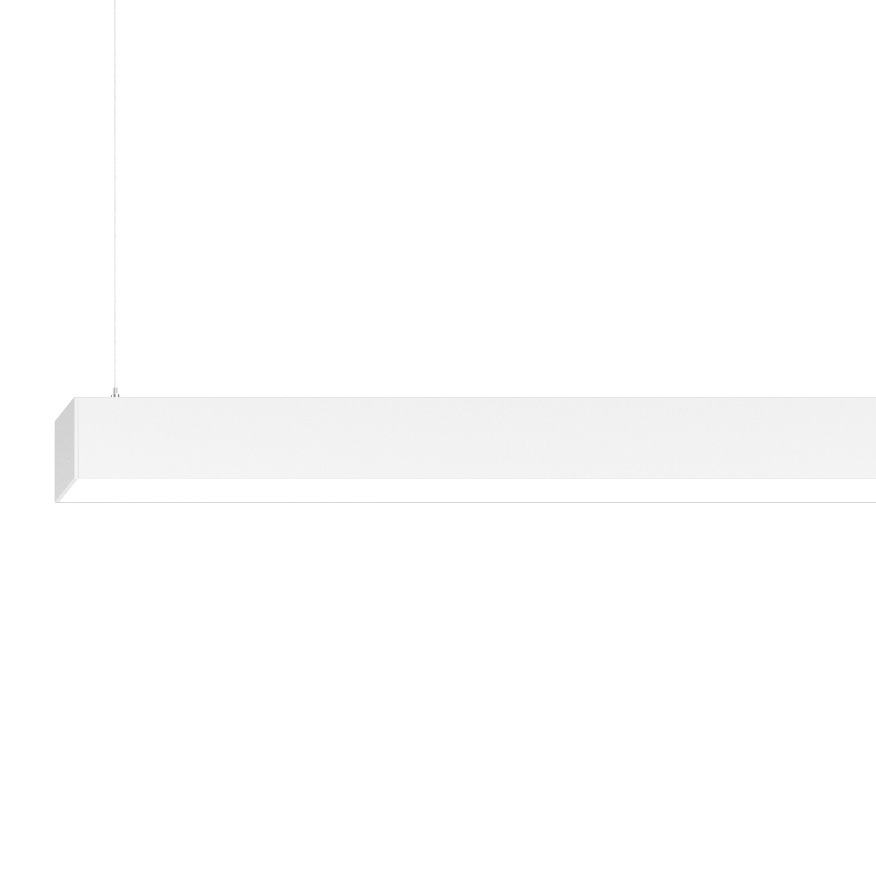Luminaire housing made of extruded aluminium profile; light tight final end caps made of aluminium; no visible screws; angular design; surface pure white powder coated; suspended luminaire with 1500mm cable suspension; with integrated toolless suspension height adjustment on the luminaire; spring clip attachment to the luminaire; freely positionable; incl. transparent feed; LED light inset consisting of highly reflective lacquered aluminium for improved thermal management; light colour 4000 K; ≤ 3 SDCM (initial MacAdam); CRI ≥ 80; min. 90% of luminous flux after 50000 operating hours; energy efficient LEDs with high CRI; micro prismatic PMMA diffuser incl. diffuser film for homogeneous illumination and reduced luminance; UGR ≤ 19; direct/indirect illumination characteristic; indirect light component with integrated PC boards for maximum, homogeneous ceiling illumination; degree of protection IP20; PC1; 220-240 V; internal wiring in light halogen free; incl. DALI-2 converter; luminaire with integrated infrared presence and brightness sensor (ESSENTIAL sensor); automatic light control of luminaire to individually adjustable brightness; variable automatic shutdown; light source replaceable by an authorized professional; control gear replaceable by an authorized professional;