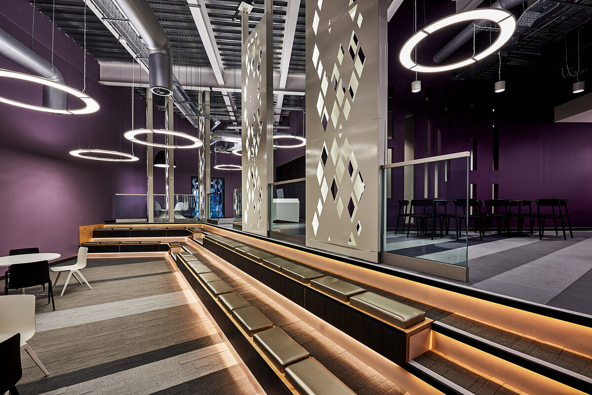 Ring-shaped suspended luminaire, consisting of single elements in quarter circle or rectangular shape; Luminaire housing made of aluminium with rounded edges; ultra low-profile design (only 15 mm); surface powder coated; cable suspension, toolless height adjustment; convenient quick mounting system without tools; incl. feeder cable; direct light distribution by LGP body (Light Guiding Prism); side coupled light directed downwards by laser engraving; indirect light component with special PCBs for increased luminous flux and maximum ceiling illumination; completely homogeneous illumination; energy-efficient LEDs with very good colour rendering; canopy for through wiring; optional acoustic elements available