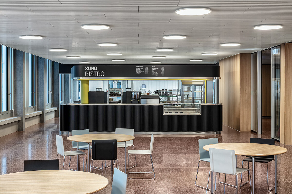 Round luminaire housing in aluminium; ultra low-profile design (only 15 mm); surface powder coated; convenient quick mounting system without tools; direct light distribution by LGP body (Light Guiding Prism); side coupled light directed downwards by laser engraving; light control via highly reflective reflector material; completely homogeneous illumination; energy-efficient LEDs with very good colour rendering; luminaire with 2 cable openings and plug-in terminals for through wiring; sound absorbing accessories available