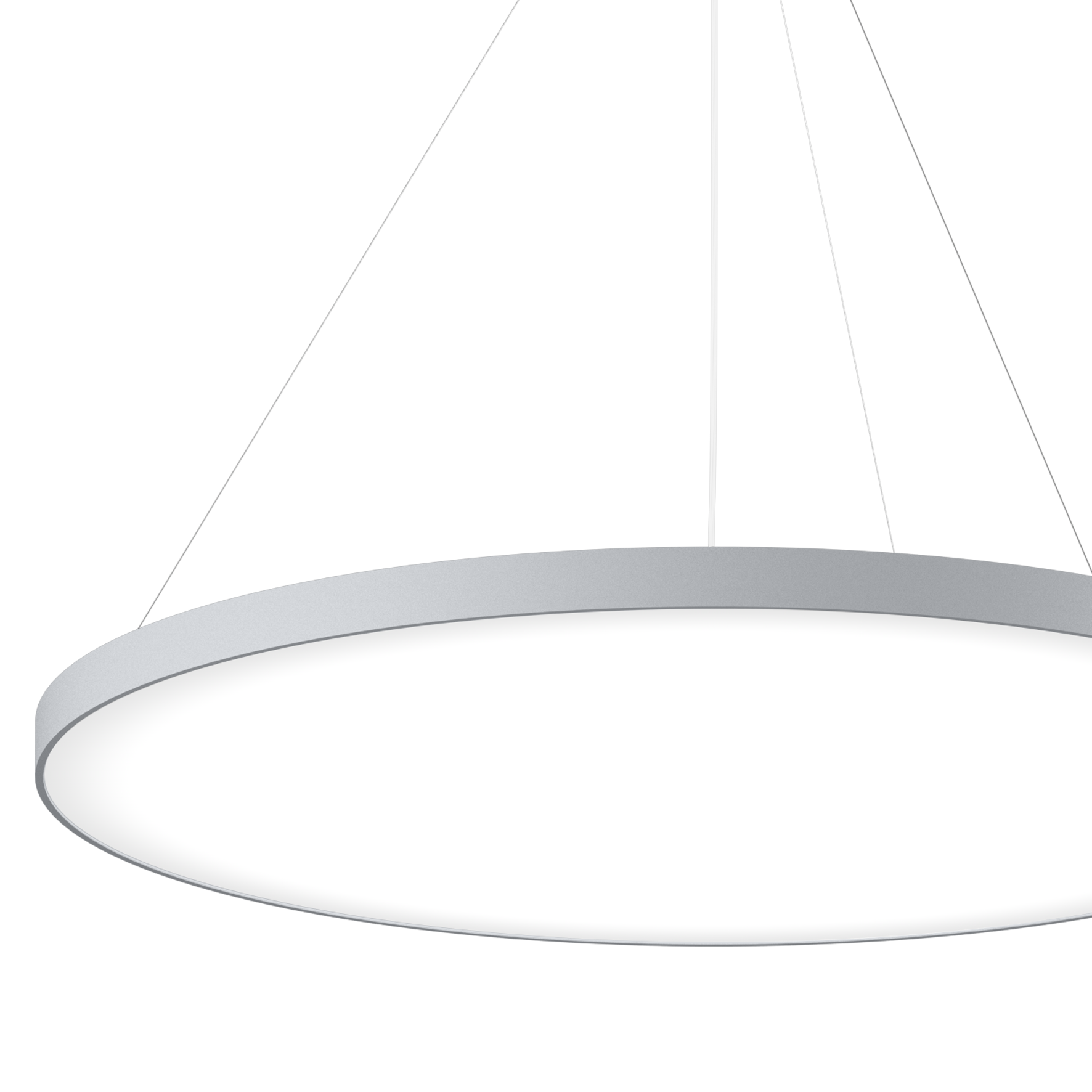 Round luminaire housing in aluminium, rolled profile, seamlessly welded; surface white aluminium powder coated; highly reflective coating for improved efficiency; suspended luminaire with 1500mm cable suspension; with integrated toolless suspension height adjustment on the luminaire; incl. feed (white); completely homogeneously illuminated, satinised PMMA cover; direct / indirect radiation characteristic for additional accentuation of the ceiling; light colour 4000 K; binning initial MacAdam ≤ 3 SDCM; CRI ≥ 80; min. 90% of luminous flux after 50000 operating hours; energy efficient LEDs with high CRI; canopy with 2 cable openings and plug-in terminal for through wiring; degree of protection IP40; PC1; 220-240 V; internal wiring in light halogen free; incl. DALI-2 converter; light source replaceable by an authorized professional; control gear replaceable by an authorized professional;