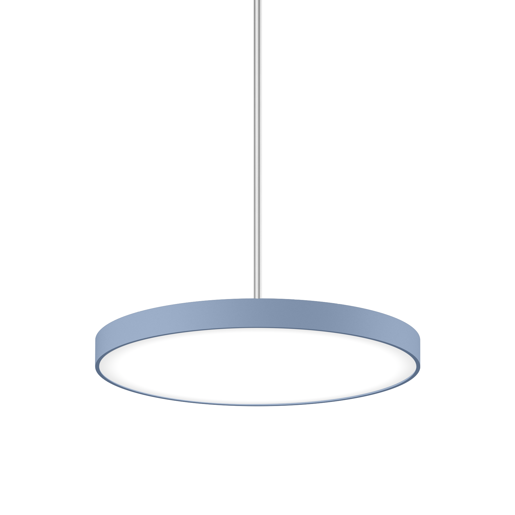 Round luminaire housing in aluminium, rolled profile, seamlessly welded; surface special colours powder coated; highly reflective coating for improved efficiency; suspended luminaire with adjustable pendant rod mounting (chrome) 1000mm, feed in rod; completely homogeneously illuminated, satinised PMMA cover; direct / indirect radiation characteristic for additional accentuation of the ceiling; light colour 4000 K; ≤ 3 SDCM (initial MacAdam); CRI ≥ 80; min. 90% of luminous flux after 50000 operating hours; energy efficient LEDs with high CRI; canopy with 2 cable openings and plug-in terminal for through wiring; degree of protection IP40; PC1; 220-240 V; internal wiring in light halogen free; incl. DALI-2 converter; light source replaceable by an authorized professional; control gear replaceable by an authorized professional;