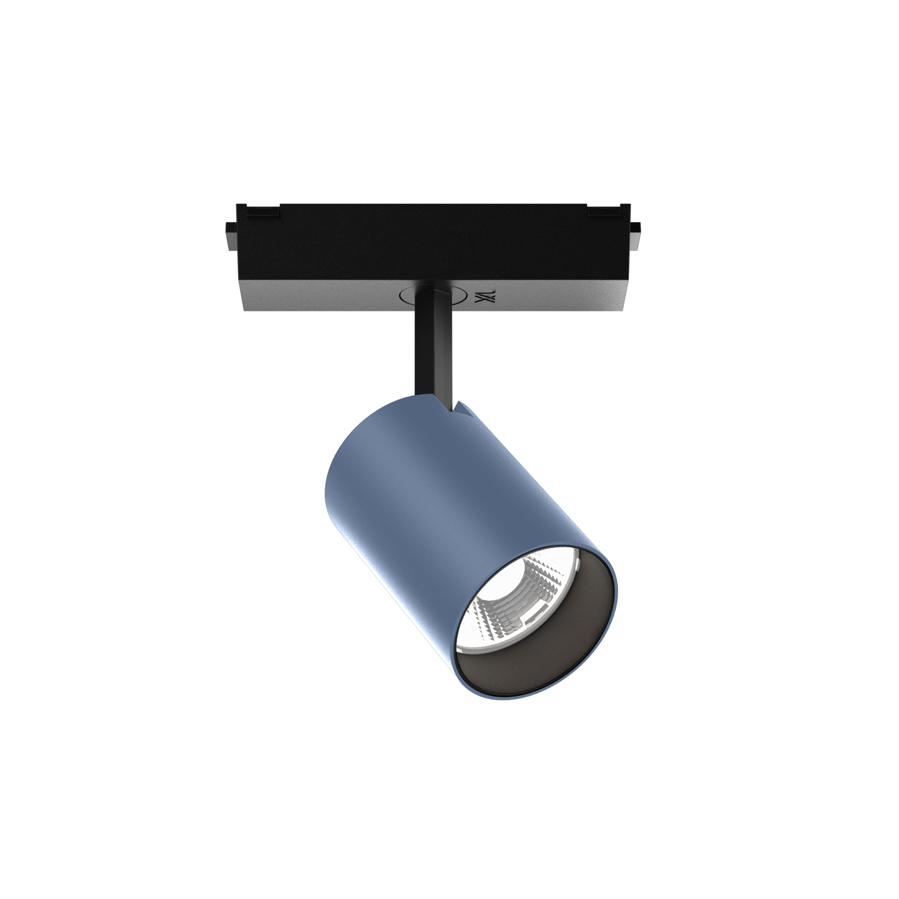 Cylindrical spotlight in aluminium; surface special colours powder coated; 360° rotatable and 90° tiltable; spotlight can be installed and moved without tools by means of magnetic holders+locking; power supplied via MOVE IT system track profile; hot plug protection; passive cooling of the LEDs through improved heat sink geometry; with high power LED for maximum efficiency; no appearance of multiple shadows; light colour 3000 K; ≤ 3 SDCM (initial MacAdam); CRI ≥ 90; min. 85% of luminous flux after 50000 operating hours; energy efficient LEDs with high CRI; good glare control through recessed light point level; incl. high quality lens system; precise radiation characteristic with 8° beam; degree of protection IP20; PC3; 48 V; DALI single control; flicker-free visual comfort through analogue current control (minimum value 1%); optical attachment available as accessory; accessories are listed separately; light source not replaceable;