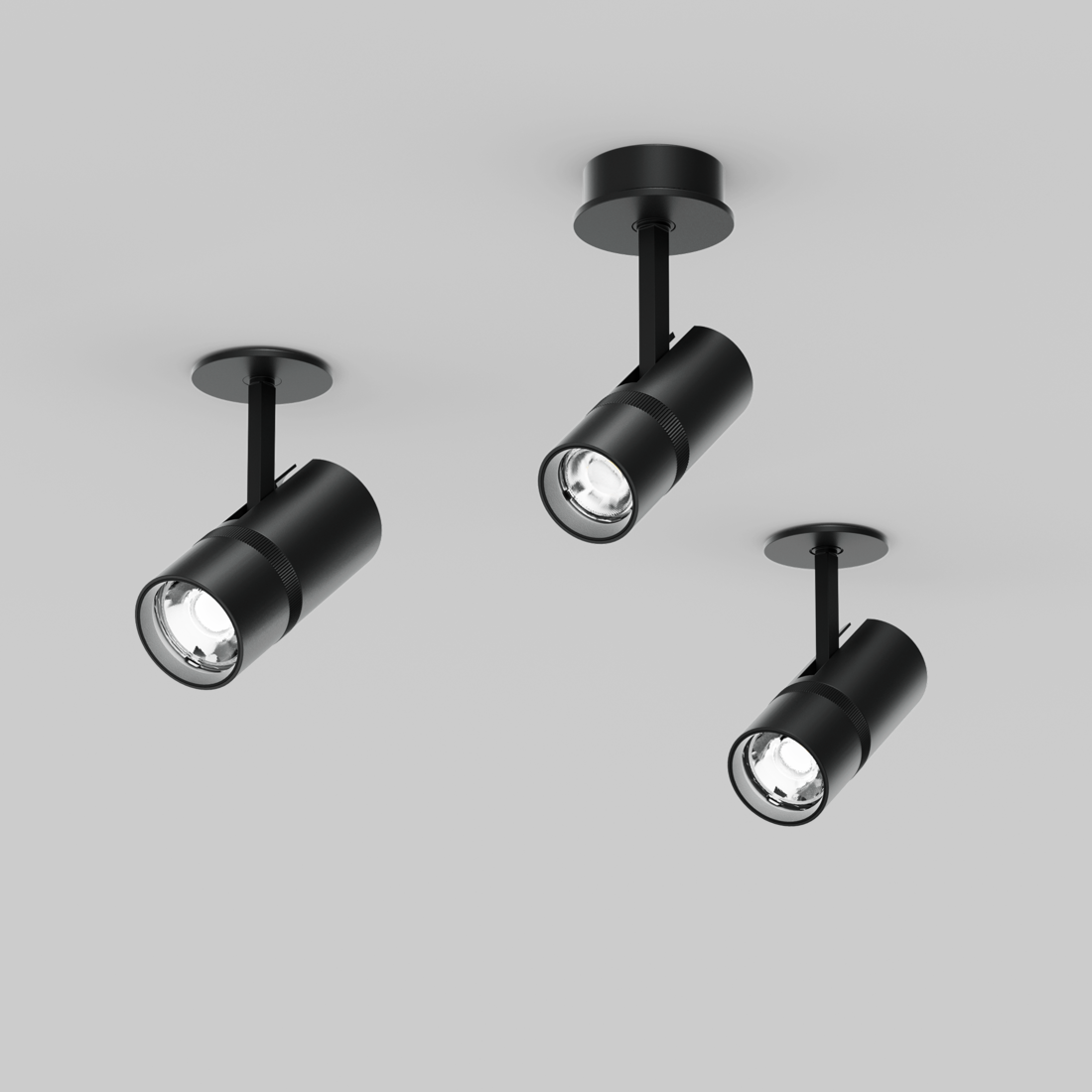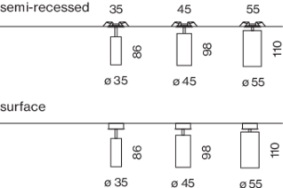 Cylindrical spotlight made of aluminium; surface powder coated; either with surface mounted housing or as ceiling recessed variant; spotlight head rotatable and tiltable; high quality lens system; precise radiation characteristics with different beam angles; installed and exchanged without tools; good glare reduction due to recessed light point plane; optical attachments as accessories; COB (Chip on Board) technology for maximum efficiency; no multiple shadows; energy-efficient LEDs with very good colour rendering
