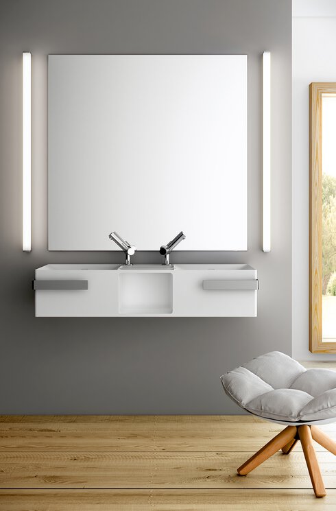 Whether in the bathroom or in the fitting room, STRETTA is a fantastic exclusive mirror luminaire. Thanks to its excellent colour rendering of CRI ≥ 90, it is used wherever colours, shapes, and designs are to be shown in their best and authentic light. STRETTA emits light on three sides and has been equipped with an opal cover to guarantee particularly homogeneous wall illumination. The IP 44 protection class ensures safe use in wet rooms.