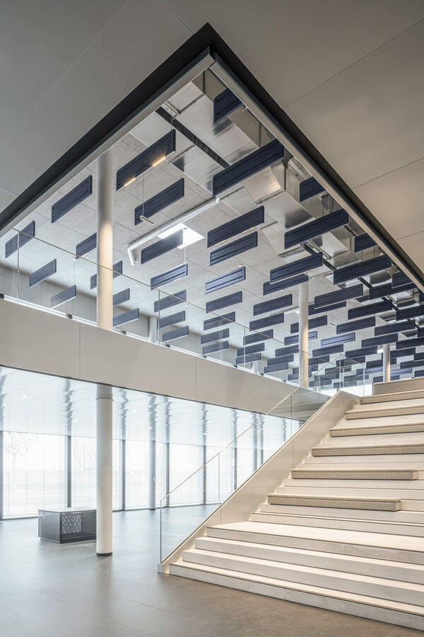 Cuerpo luminoso de fieltro PET al menos un 50 % reciclado y autoportante de calidad superior con propiedades de absorción del sonido; superficie de gran calidad óptica y táctil; estructura de dos cuencos, así se generan huecos para mejorar el rendimiento acústico; superficie de absorción sonora grande; suspendido con cable; regulación de la altura sin necesitar herramientas; optimizado para iluminación de puestos de oficina; incluido cable de alimentación transparente; inserto luminoso de perfil extruido para una mejor gestión del calor; reflector de alto brillo con óptica facetada; LEDS de alta eficiencia que proporcionan una alta reproducción cromática