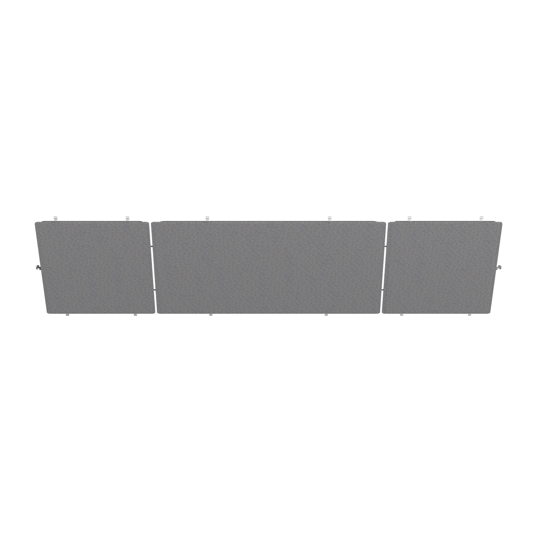 Elemento acústico de fieltro PET autoportante de alta calidad con propiedades de absorción del sonido, compuesto de al menos un 50 % de PET reciclado post-consumer; aspecto y tacto de alta calidad de la superficie, felt grey; posibles pequeñas variaciones en el color; absorción del ruido directo por el vellón delantero, así como absorción del ruido reflejado por el techo/pared mediante un vellón adicional trasero; con ello gran rendimiento acústico; para la inserción en TASK long angular suspended;