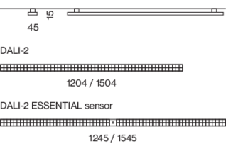 Cuerpo de perfil de aluminio con diseño angular; forma extremadamente esbelta (solo 45 x 15 mm); sin tornillos visibles; superficie sin tratar o recubierta por pulverización; apta para la instalación en carriles electrificados de 3 fases; driver en el adaptador; inserto luminoso lineal de plástico; equipado con puntos de luz LED individuales; buen control del deslumbramiento mediante plano de punto de luz retranqueado; se ha incrementado la eficiencia debido al uso de la última tecnología en el diseño de lentes; lentes aplicadas con característica de proyección wide flood; o reflector de alta calidad con superficie de múltiples facetas revestida con aluminio por vaporización; precisa característica de emisión con distribución de luz simétrica; adaptador para instalación sin herramientas o desplazamiento en diferentes carriles electrificados de 3 fases