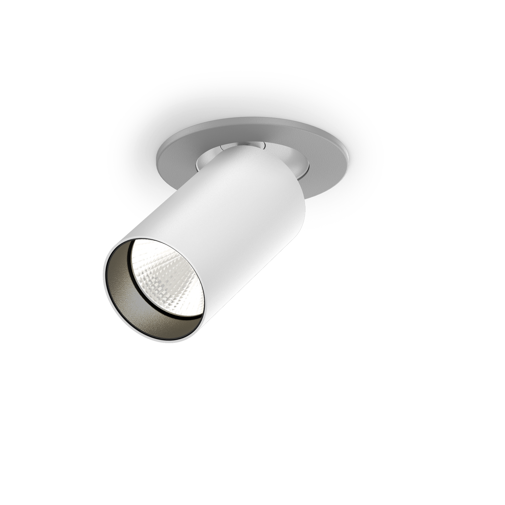 Elemento proyector redondo de aluminio; superficie pintada al polvo en blanco; montaje sin herramientas mediante kit de montaje con sistema de inserción por bola patentado; lámpara empotrable con borde perimetral; apropiada para grosores de techo de 2-25 mm; proyector altura ajustable sin herramienta: enrasado al techo, sobresaliente 25 mm o 35 mm; giratorio 360° y orientable 90°; refrigeración pasiva de los LEDs por medio de una geometría de cuerpo de refrigeración optimizada; con tecnología COB (Chip on Board) para eficiencia máxima; ninguna formación de sombras múltiples; color de luz 2700 K; binning inicialmente MacAdam ≤ 2 SDCM; CRI ≥ 90; mín. 80 % del flujo luminoso después de 50000 horas de funcionamiento; LED energéticamente eficientes con alto rendimiento de color; reflector de alta calidad vaporizado de aluminio con revestimiento de facetas esféricas; característica de difusión precisa con ángulo de proyección de 14°; buen antideslumbramiento a través de nivel de punto de luz retraído; el accesorio óptico está disponible como accesorio; el accesorio se menciona por separado; grado de protección IP20; CP2 220-240V; incluido convertidor, no regulable; Convertidor cableado en el lado secundario; fuente luminosa sustituible por un técnico autorizado; mecanismo de control sustituible por un técnico autorizado;