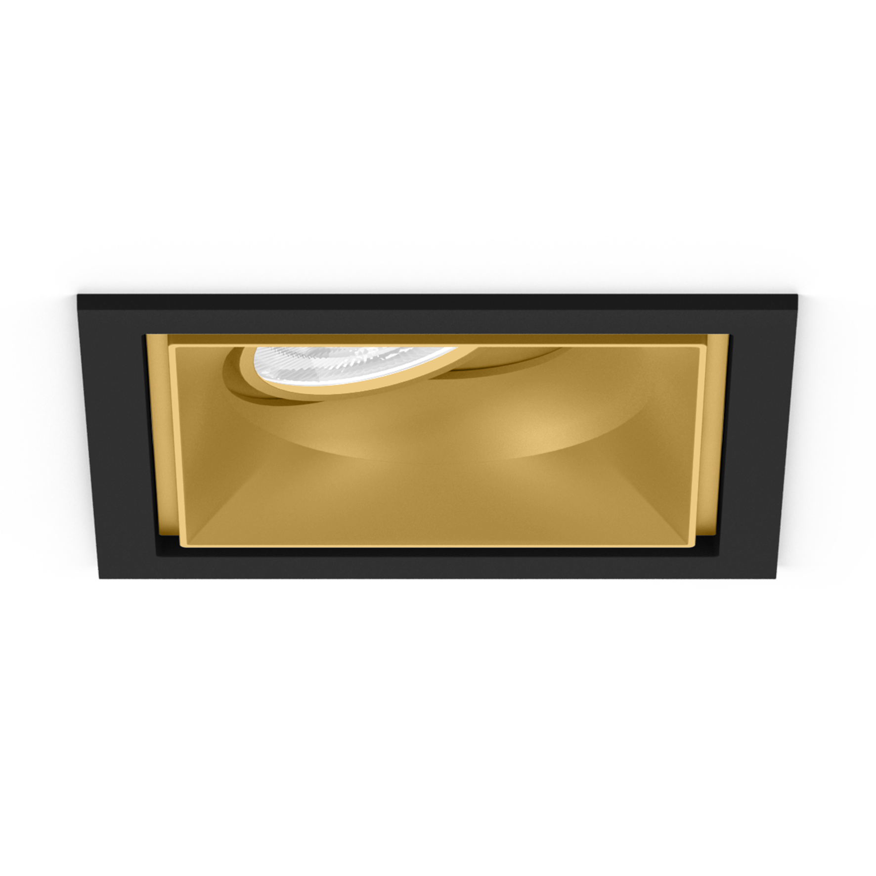 Proyector empotrable cuadrado de fundición de aluminio inyectado; de 1 lámpara; superficie dorado; orientable 30°; montaje sin herramientas mediante kit de montaje con sistema de inserción por bola patentado; carcasa de montaje cuadrada; con marco negro intenso; apropiada para grosores de techo de 2-25 mm; refrigeración pasiva de los LEDs por medio de una geometría de cuerpo de refrigeración optimizada; con tecnología COB (Chip on Board) para eficiencia máxima; ninguna formación de sombras múltiples; color de luz 2700 K; binning inicialmente MacAdam ≤ 2 SDCM; CRI ≥ 90; mín. 80 % del flujo luminoso después de 50000 horas de funcionamiento; LED energéticamente eficientes con alto rendimiento de color; incl. óptica de lente de alta calidad; característica proyección precisa con ángulo de proyección de 44°; UGR ≤ 16; lámpara para el puesto de trabajo apta para pantallas según DIN EN 12464-1; luminancia por encima de 65° ≤ 1500 cd/m²; grado de protección IP40 en el lado inferior (IP20 en el superior); CP2 220-240V; incluido convertidor, no regulable; caja de conexión para cableado, 3 o 5 pines, disponible como accesorio; el accesorio se menciona por separado; fuente luminosa sustituible por un técnico autorizado; mecanismo de control sustituible por un técnico autorizado;