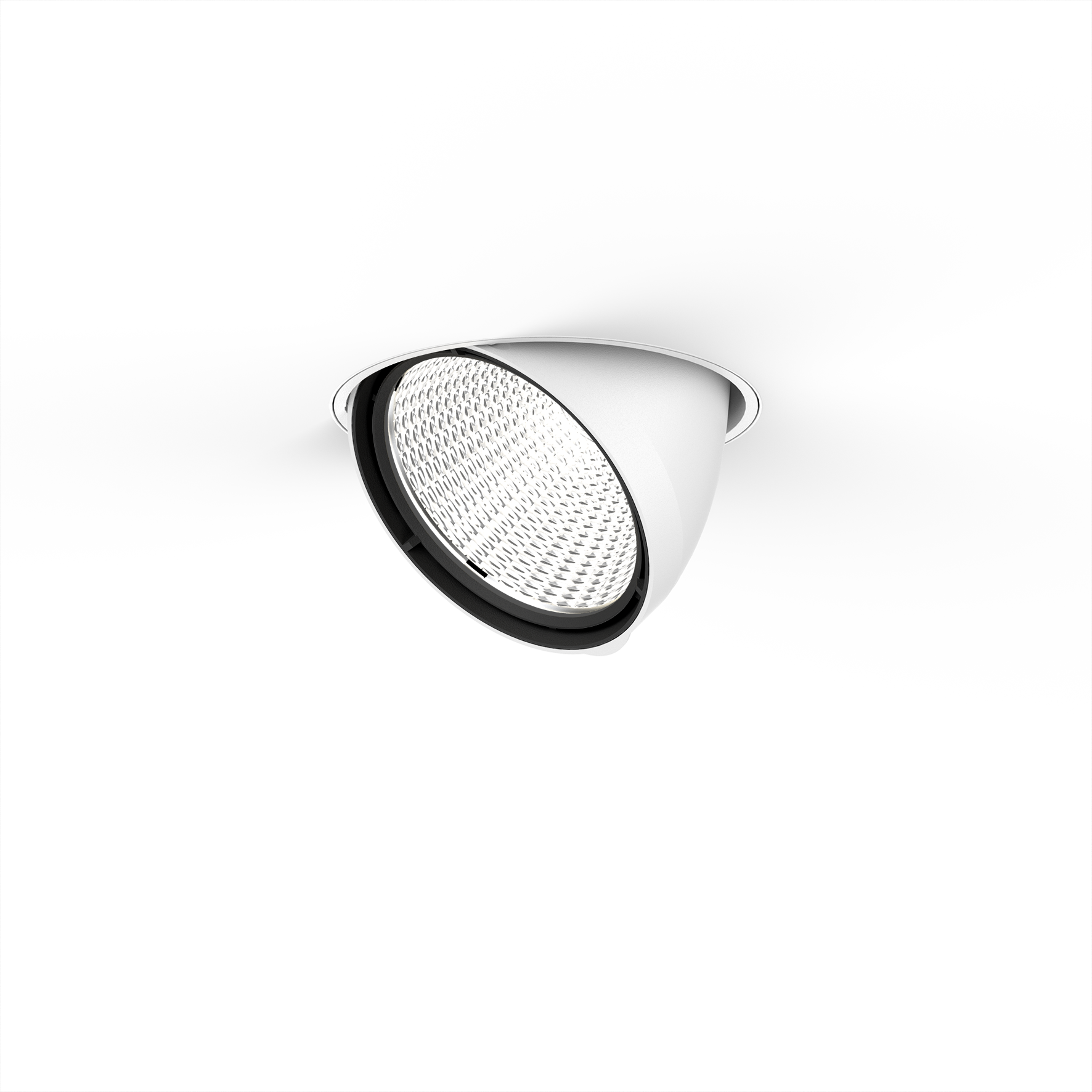 Proyector empotrable redondo de fundición inyectada de aluminio; de 1 lámpara; superficie pintada al polvo en blanco; montaje sin herramientas mediante kit de montaje con sistema de inserción por bola patentado; para montaje sin borde en techos de cartón yeso; para instalación en techos con grosor de 12,5/15/25 mm; giratorio 360° y extraíble en 45°; refrigeración pasiva de los LEDs por medio de una geometría de cuerpo de refrigeración optimizada; con tecnología COB (Chip on Board) para eficiencia máxima; ninguna formación de sombras múltiples; color de luz 4000 K; binning inicialmente MacAdam ≤ 3 SDCM; CRI ≥ 90; LED energéticamente eficientes con alto rendimiento de color; incl. reflector de aluminio de alta calidad con óptica facetada esférica; anodizada de alto brillo; reflexión de color neutral a través de una ausencia absoluta de color de interferencia; para puesta en escena brillante de objetos; característica de difusión precisa con ángulo de proyección de 17°; los accesorios ópticos están disponibles como accesorios; grado de protección IP20; CP2 220-240V; incluido convertidor DALI-2; caja de conexión para cableado, 3 o 5 pines, disponible como accesorio; el accesorio se menciona por separado; fuente luminosa sustituible por un técnico autorizado; mecanismo de control sustituible por un técnico autorizado;