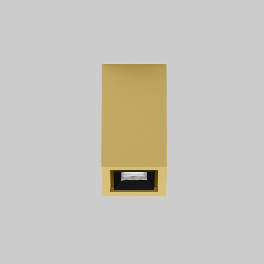 Downlight múltiple de aluminio cuadrada de superficie; cuerpo luminoso insertable en la placa de montaje por enclavamiento y sin necesidad de herramienta; convertidor integrado en el cuerpo luminoso; superficie pintada al polvo en polvo de oro; equipado con una óptica wide flood square; distribución de luz simétrica con precisa característica de emisión, ángulo de emisión 71°; reflector de alta calidad con óptica micro-facetada, superficie vaporizada de aluminio; Reflector negro; refrigeración pasiva de los LEDs por medio de una geometría de cuerpo de refrigeración optimizada; color de luz 2700 K; binning inicialmente MacAdam ≤ 3 SDCM; CRI ≥ 90; mín. 90 % del flujo luminoso después de 50000 h de vida útil; LEDS de alta eficiencia que proporcionan una alta reproducción cromática; grado de protección IP20; CP1; 220-240 V; incluido convertidor, no regulable; fuente luminosa no sustituible; mecanismo de control sustituible por un técnico autorizado; sin reverberación;