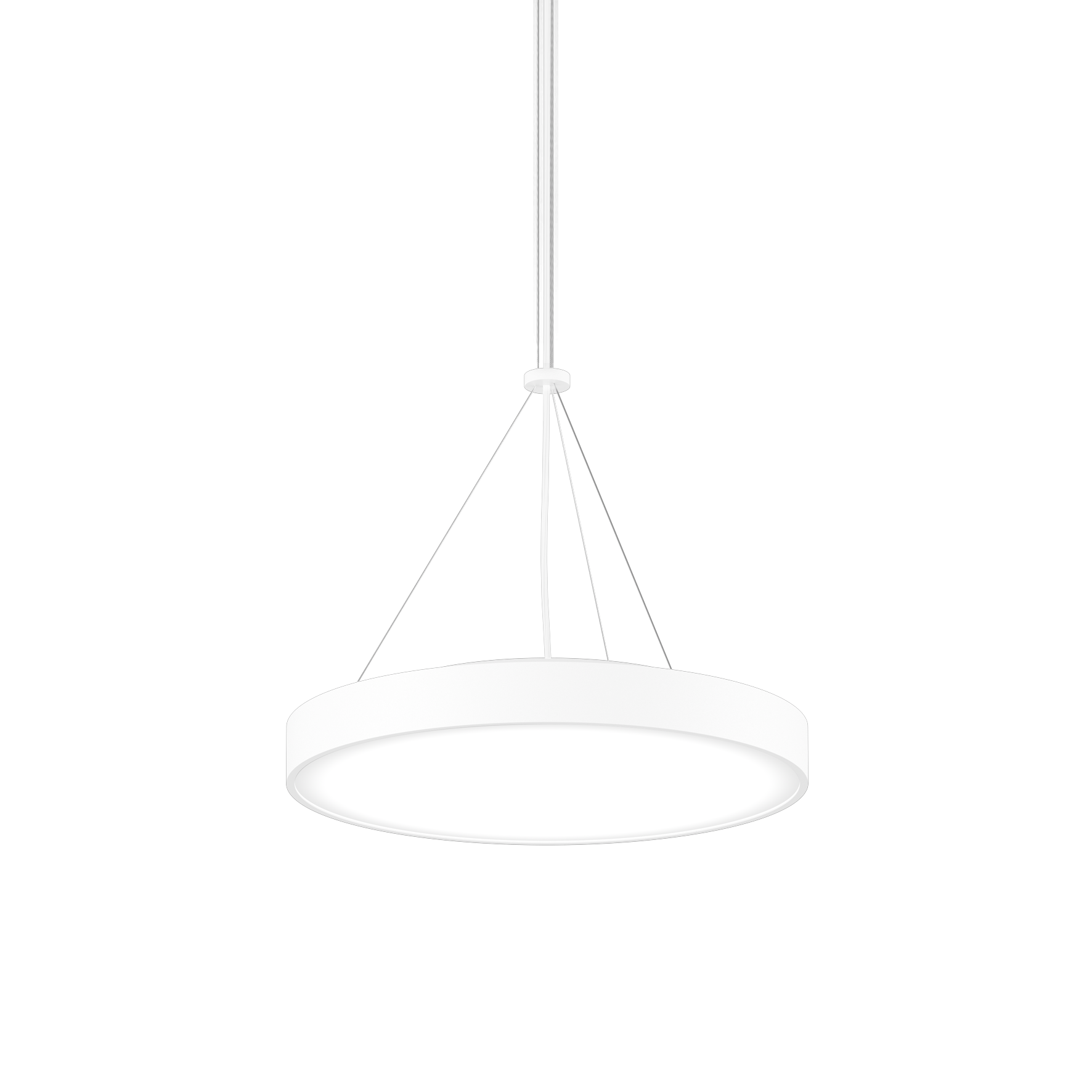 Cuerpo de lámpara redondo de aluminio, perfil enrollado, soldado sin costuras; superficie pintada al polvo en blanco puro; con revestimiento de alta calidad que incrementa la eficiencia; luminaria suspendida con cable de 1500 mm; regulación de la altura sin necesitar herramientas; incl. cable de alimentación (blanco); difusor microprismático de PMMA; iluminación homogénea; UGR ≤ 16; lámpara para el puesto de trabajo apta para pantallas según DIN EN 12464-1; luminancia por encima de 65° ≤ 3000 cd/m²; característica de proyección directa / indirecta para un acentuado adicional del techo; color de luz 3000 K; ≤ 3 SDCM (initial MacAdam); CRI ≥ 80; mín. 90 % del flujo luminoso después de 50000 horas de funcionamiento; LED energéticamente eficientes con alto rendimiento de color; baldaquín con 2 orificios para cables y terminal de inserción para cableado pasante; grado de protección IP40; CP1; 220-240 V; cableado interno de la lámpara libre de halógenos; incluido convertidor, no regulable; fuente luminosa sustituible por un técnico autorizado; mecanismo de control sustituible por un técnico autorizado;
