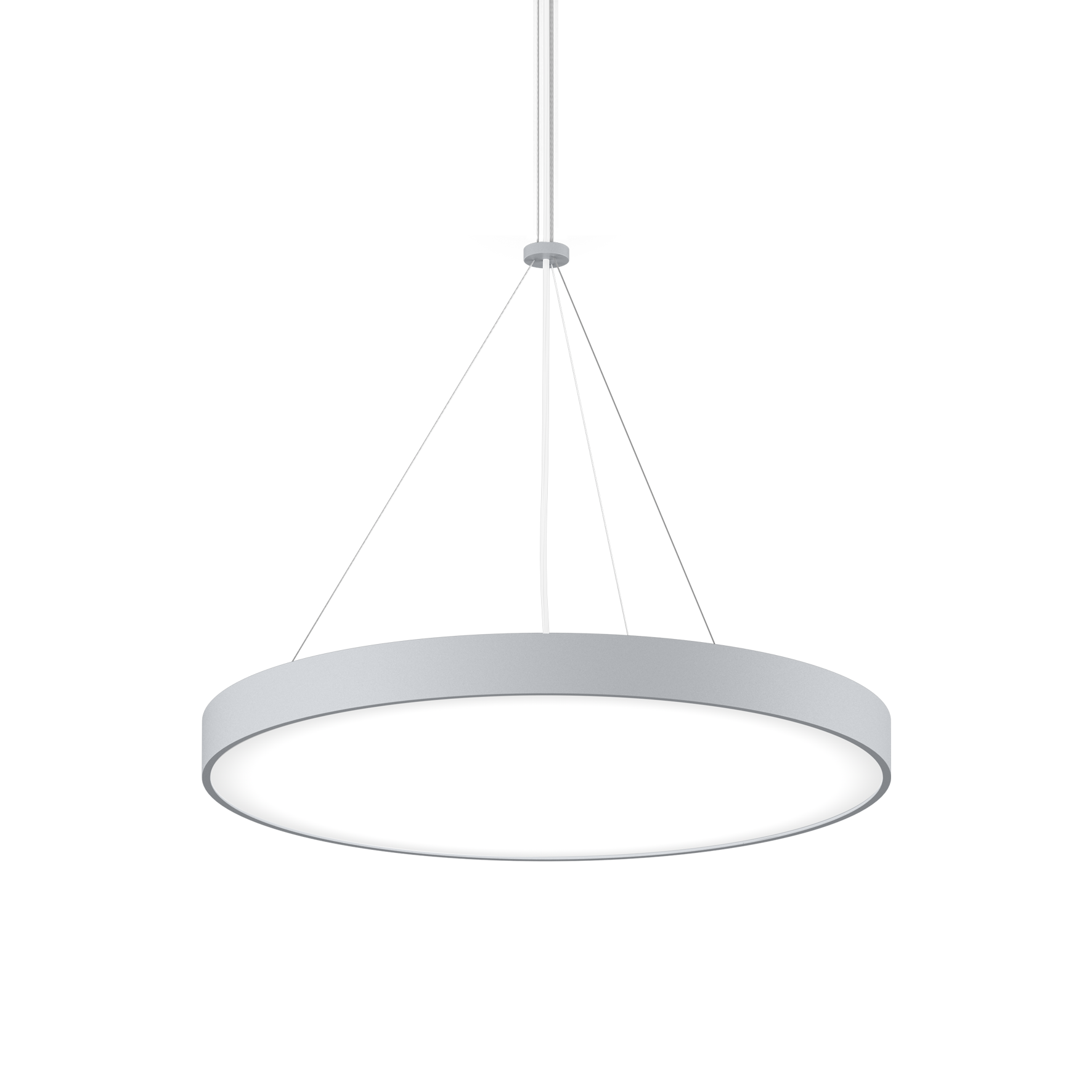 Cuerpo de lámpara redondo de aluminio, perfil enrollado, soldado sin costuras; superficie pintada al polvo en aluminio blanco; con revestimiento de alta calidad que incrementa la eficiencia; luminaria suspendida con cable de 1500 mm; regulación de la altura sin necesitar herramientas; incl. cable de alimentación (blanco); tapa PMMA iluminada homogéneamente con acabado sanitado; característica de proyección directa / indirecta para un acentuado adicional del techo; color de luz 3000 K; ≤ 3 SDCM (initial MacAdam); CRI ≥ 80; mín. 90 % del flujo luminoso después de 50000 horas de funcionamiento; LED energéticamente eficientes con alto rendimiento de color; baldaquín con 2 orificios para cables y terminal de inserción para cableado pasante; grado de protección IP40; CP1; 220-240 V; cableado interno de la lámpara libre de halógenos; incluido convertidor DALI-2; fuente luminosa sustituible por un técnico autorizado; mecanismo de control sustituible por un técnico autorizado;