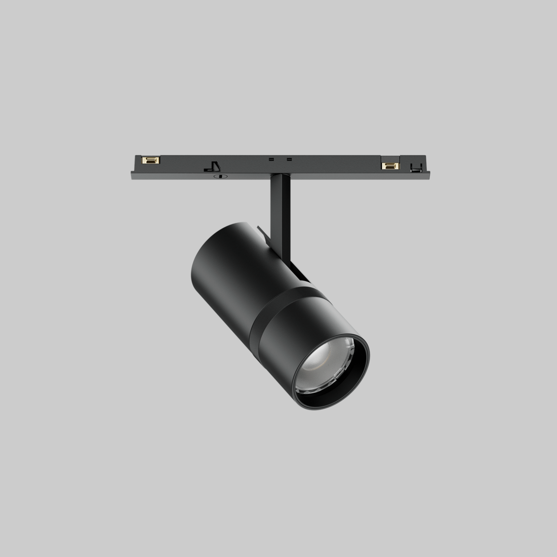 Spotlight inset made of aluminium; surface powder coated; light inset can be installed and moved without tools by means of clip mount; optionally for linear or curve tracks; spotlight head rotatable and tiltable; high quality lens system; precise radiation characteristics with different beam angles; installed and exchanged without tools; good glare reduction due to recessed light point plane; optical attachments as accessories; COB (Chip on Board) technology for maximum efficiency; no multiple shadows; energy-eff. LEDs - very good colour rendering; hot plug protection