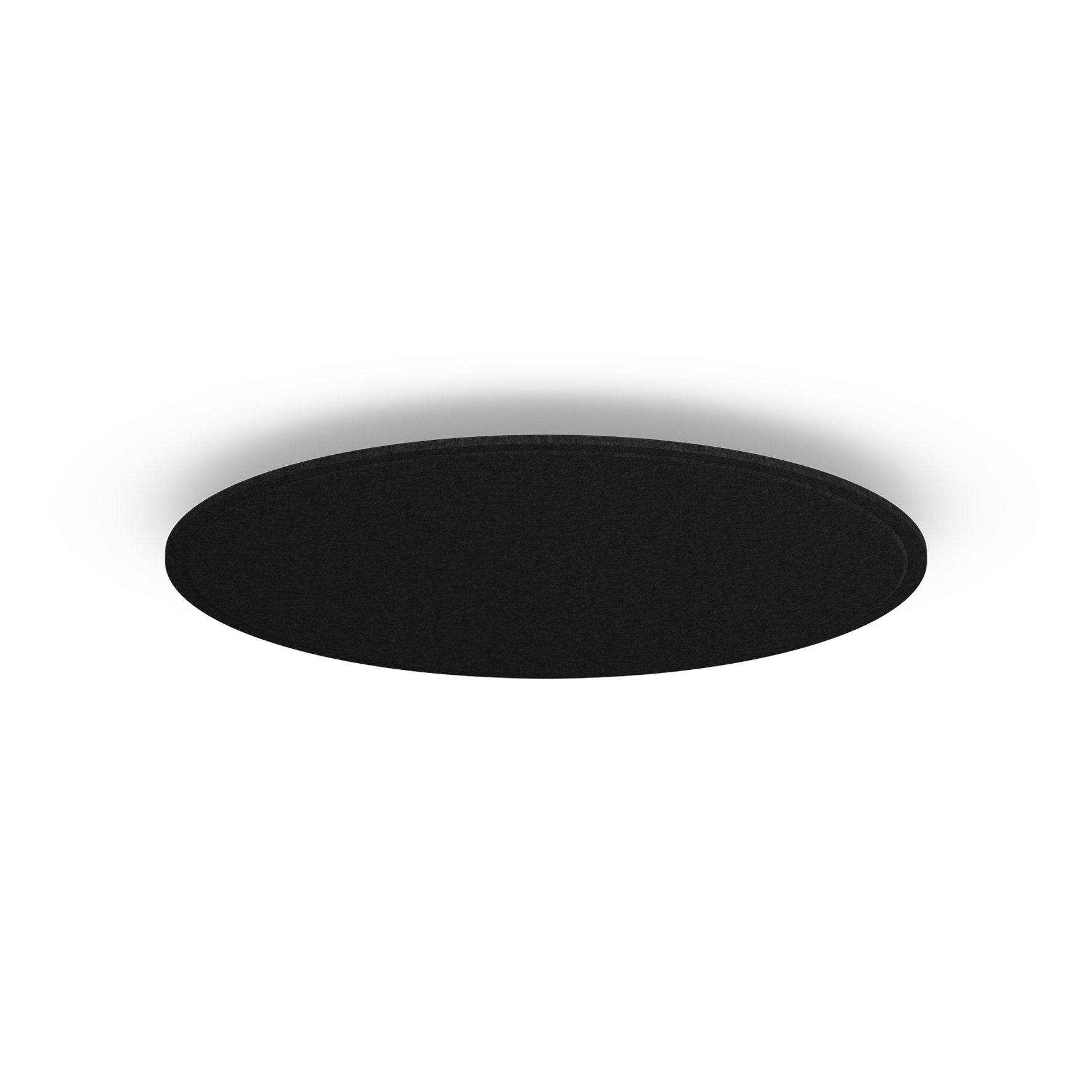 Élément acoustique en feutre PET de haute qualité autoportant, avec des caractéristiques d'absorption acoustique, composé d'au moins 50 % de PET recyclé post-consumer ; forme ronde ; esthétique et haptique de la surface de haute qualité, noir ; déviations de couleurs possibles ; absorption du bruit direct grâce à la façade en non-tissé, ainsi qu'absorption du bruit réfléchi par le plafond/mur grâce à une couche de non-tissé supplémentaire au dos ; pour de meilleures performances acoustiques ; pour montage apparent mur/plafond ;