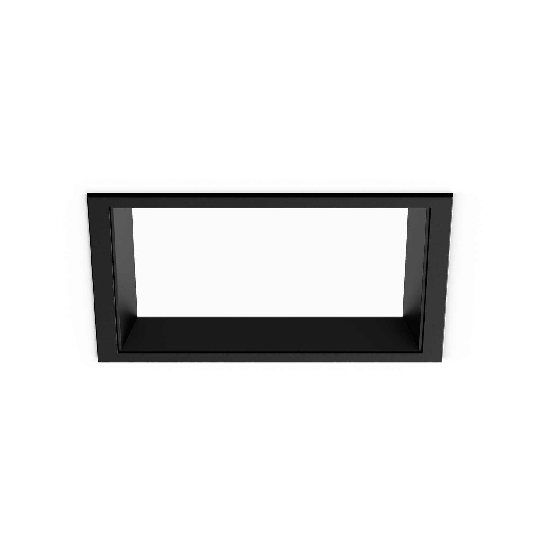 Spot encastré carré en aluminium moulé sous pression ; surface thermolaquée noir ; avec bord continu ; approprié pour une épaisseur de plafond de 2-25 mm ; montage sans outil avec fermeture par ressort à déclic ; refroidissement passif des LED par géométrie optimisée du radiateur ; couleur de lumière 3000 K ; binning initialement MacAdam ≤ 3 SDCM ; CRI ≥ 90 ; min. 80 % du flux lumineux au bout de 50000 heures de service ; LEDs à efficience énergétique avec rendu élevé des couleurs ; cache en PMMA microprismatique, éclairage parfaitement homogène ; niveau d'éclairage décalé vers l'arrière ; indice de protection IP20 ; CP2 ; 220-240 V ; y compris convertisseur externe pour fente plafond ; non gradable ; source lumineuse remplaçable par un professionnel agréé ; dispositif de commande remplaçable par un professionnel agréé ;