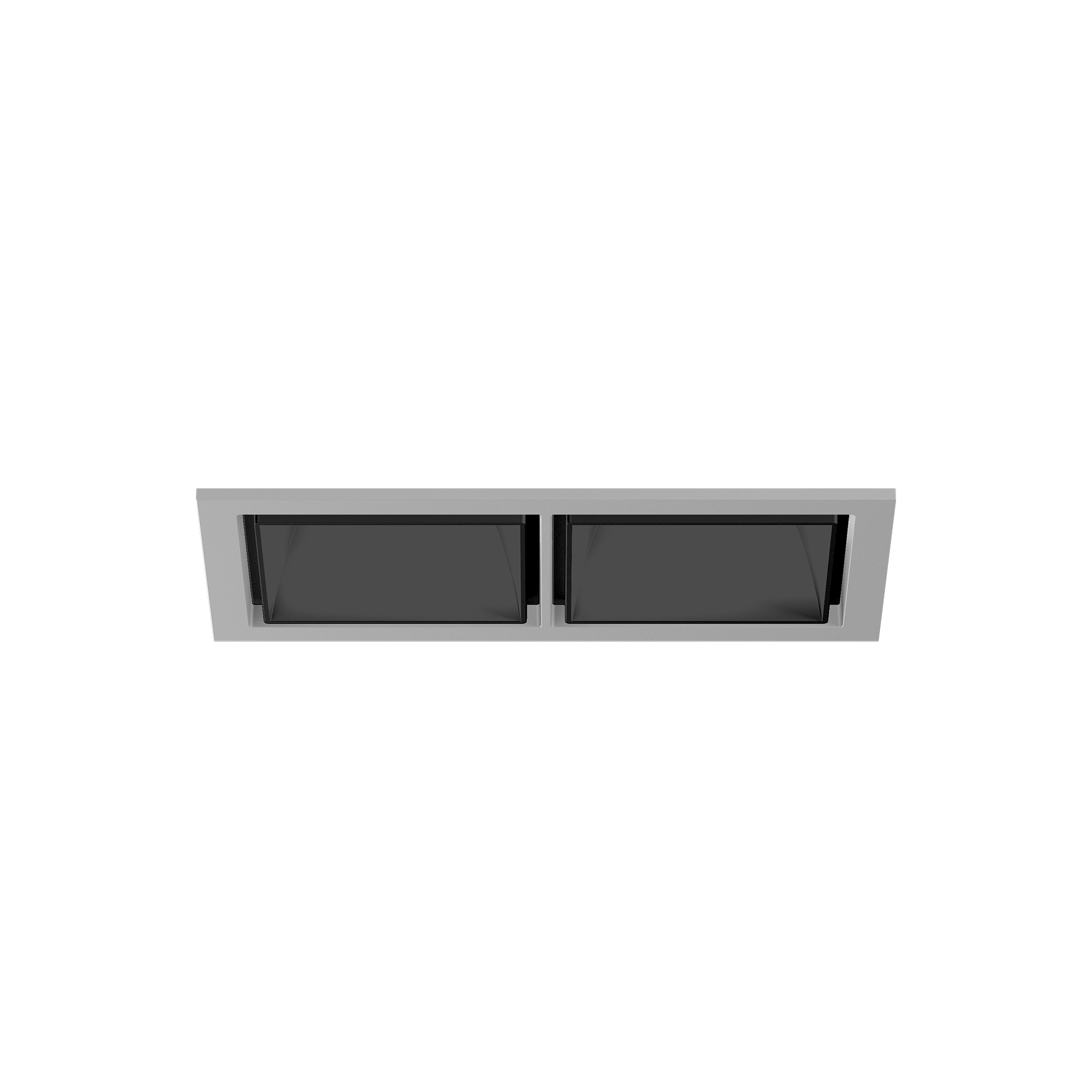 Spot encastré carré en aluminium moulé sous pression ; à 2 lampes ; surface noir ; montage sans outils en kit de montage grâce à un système breveté de loquet à billes ; boîtier à encastrer rectangulaire ; avec bord continu aluminium blanc ; approprié pour une épaisseur de plafond de 2-25 mm ; refroidissement passif des LED par géométrie optimisée du radiateur ; avec technologie COB (Chip on Board) pour efficacité maximale ; pas de formation d'ombres multiples ; couleur de lumière 3000 K ; binning initialement MacAdam ≤ 2 SDCM ; CRI ≥ 90 ; min. 80 % du flux lumineux au bout de 50000 heures de service ; LEDs à efficience énergétique avec rendu élevé des couleurs ; incl. optique lentille de grande qualité ; caractéristique de rayonnement précise avec angle de diffusion 51° ; UGR ≤ 19 ; luminaire d'éclairage de poste de travail adapté au travail sur écran selon DIN EN 12464-1 ; luminance supérieure à 65° ≤ 1500 cd / m² ; indice de protection en bas IP44 (en haut IP20) ; CP2 ; 220-240 V ; convertisseur DALI-2 inclus ; boîtier de raccordement pour câblage ultérieur, 3 ou 5 bornes, disponible comme accessoire ; accessoires présentés séparément ; source lumineuse remplaçable par un professionnel agréé ; dispositif de commande remplaçable par un professionnel agréé ;
