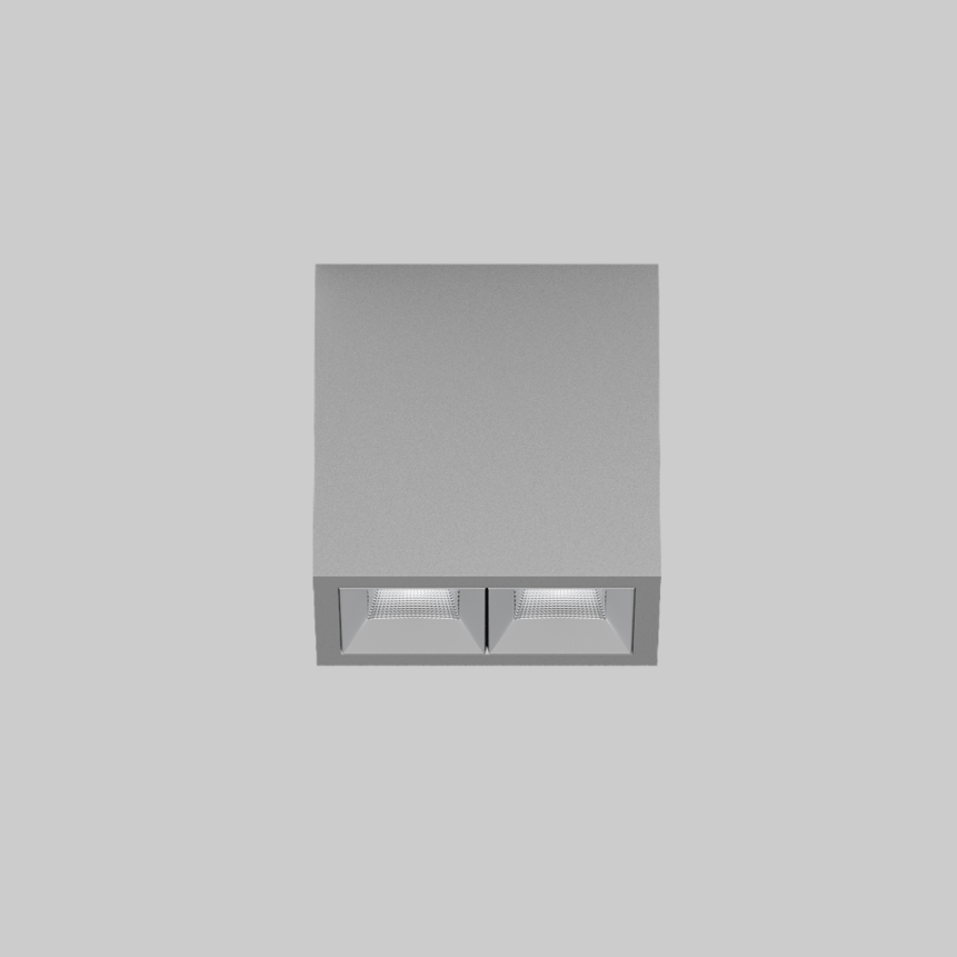 Multi-downlight apparent rectangulaire, en aluminium ; corps de luminaire pouvant être monté sans outils sur la plaque de montage grâce à un système de verrouillage ; convertisseur intégré dans le corps de luminaire ; surface thermolaquée aluminium blanc ; équipé de deux optiques wide flood square ; répartition symétrique de la lumière avec caractéristique d'émission précise, angle de rayonnement 71° ; réflecteur de haute qualité avec surface à micro-facettes vaporisée d'aluminium ; Réflecteur chrome ; refroidissement passif des LED par géométrie optimisée du radiateur ; couleur de lumière 4000 K ; binning initialement MacAdam ≤ 3 SDCM ; CRI ≥ 90 ; min. 90 % du flux lumineux au bout de 50000 h de durée de vie ; High-Power-LED à grande efficacité énergétique, très bon rendu des couleurs ; indice de protection IP20 ; CP1 ; 220-240 V ; convertisseur DALI-2 inclus ; source lumineuse non remplaçable ; dispositif de commande remplaçable par un professionnel agréé ; sans distorsions ;