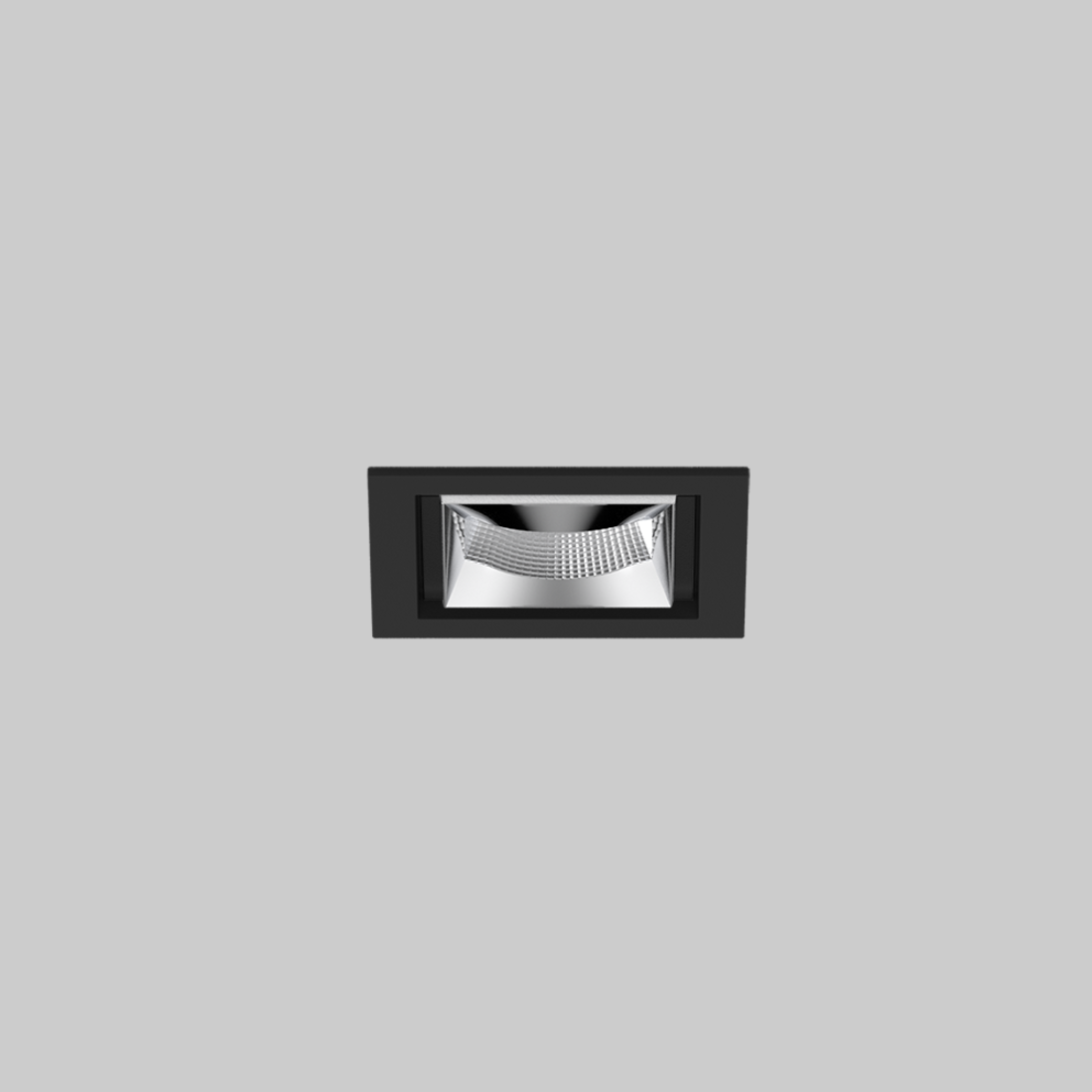 Multi-Downlight carré en aluminium moulé sous pression pour encastrement ; montage sans outils en kit de montage grâce à un système breveté de loquet à billes ; boîtier à encastrer carré ; avec bord continu noir profond ; approprié pour une épaisseur de plafond de 2-25 mm ; équipé d'une optique couloir (rectangular medium) ; répartition symétrique de la lumière avec caractéristique d'émission précise, angle de rayonnement 34°x69° ; réflecteur de haute qualité avec surface à micro-facettes vaporisée d'aluminium ; réflecteur chromé ; refroidissement passif des LED par géométrie optimisée du radiateur ; couleur de lumière 4000 K ; ≤ 3 SDCM (initial MacAdam) ; CRI ≥ 90 ; min. 90 % du flux lumineux au bout de 50000 h de durée de vie ; High-Power-LED à grande efficacité énergétique, très bon rendu des couleurs ; indice de protection IP20 ; CP2 ; convertisseur DALI-2 inclus ; source lumineuse non remplaçable ; dispositif de commande remplaçable par un professionnel agréé ; sans distorsions ;