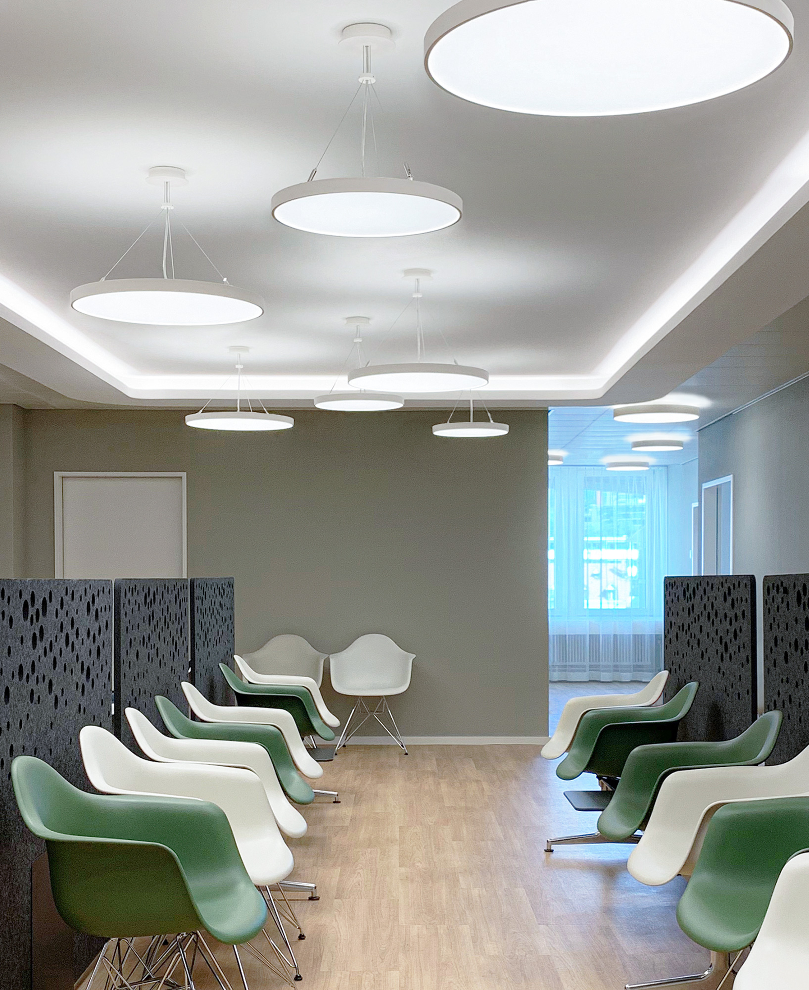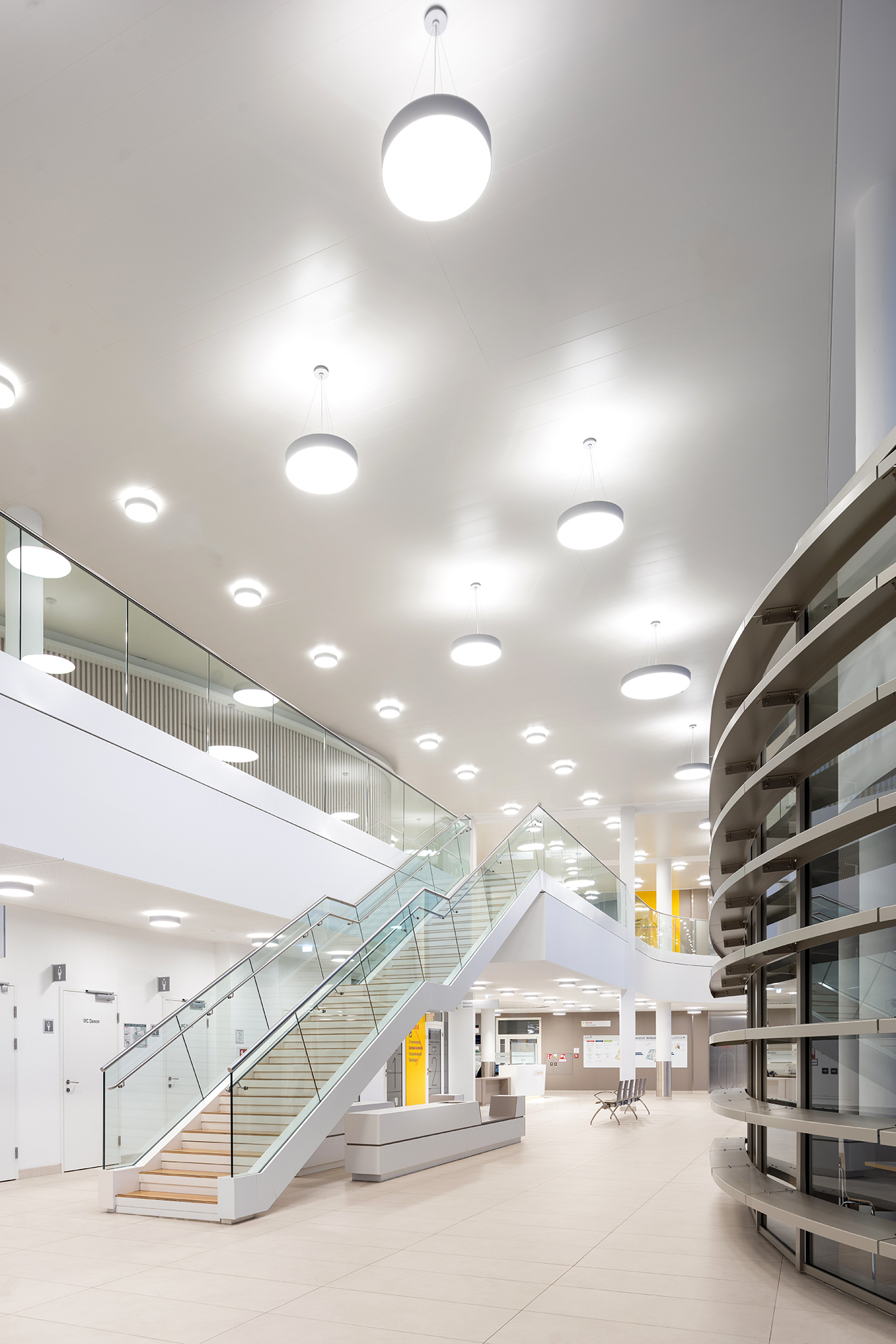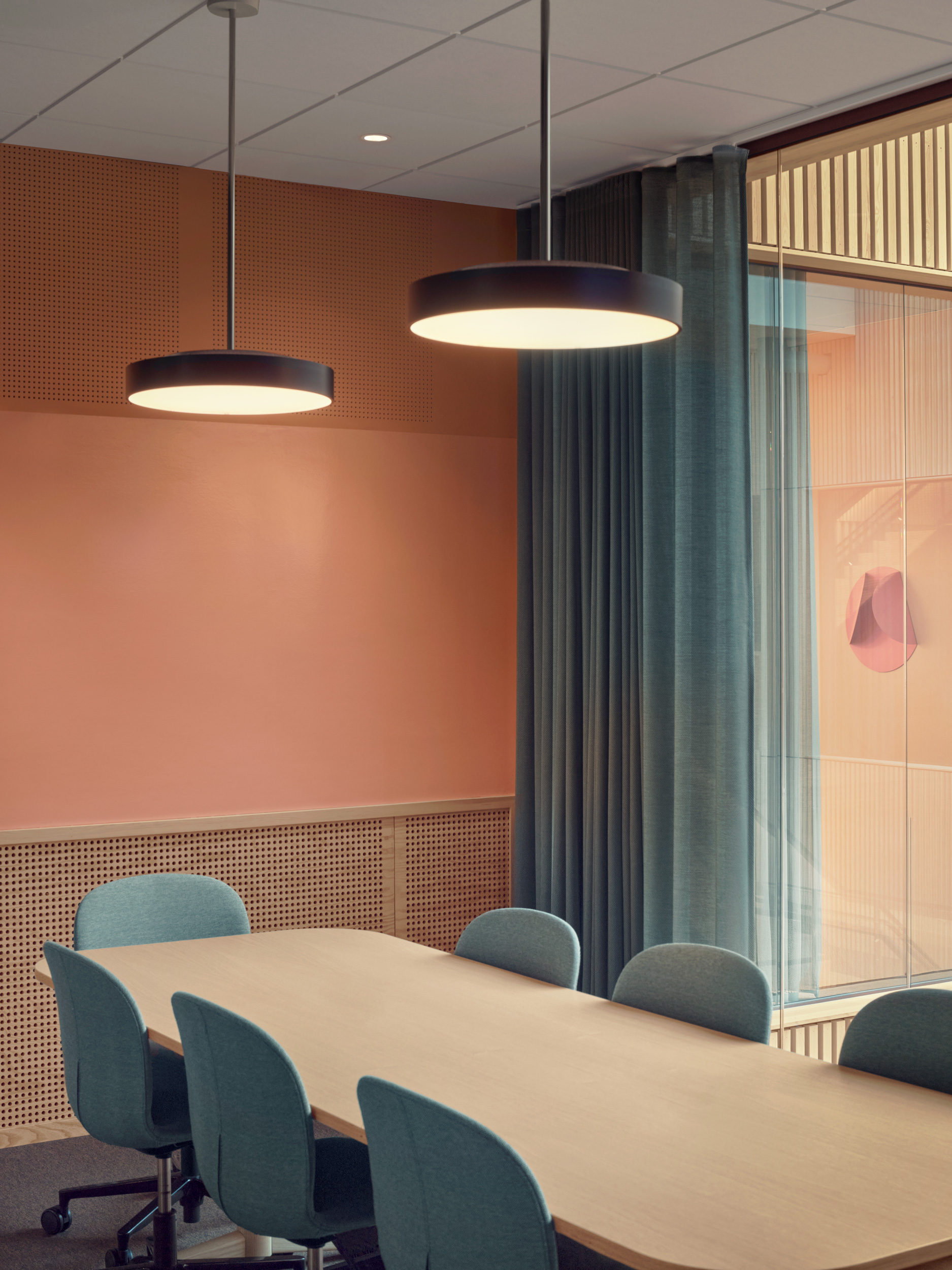 VELA est bien plus qu’un simple luminaire, il façonne l’atmosphère. La lumière directe destinée à éclairer les espaces fonctionnels et la lumière indirecte disponible en option pour un éclairage de plafond feutré créent une impression équilibrée et chaleureuse qui donne vie à l’architecture. Grâce au Tunable White (2 700 K–6 500 K), la couleur de la lumière peut être ajustée de façon dynamique entre une luminosité froide en journée, qui favorise la concentration et l’activité, et des tons doux et chauds qui annoncent la tombée de la nuit, tout en incitant à la détente. De cette façon, VELA accompagne le rythme naturel de la journée et crée un environnement confortable, à tout moment du jour et de la nuit.