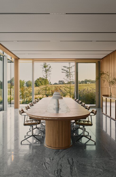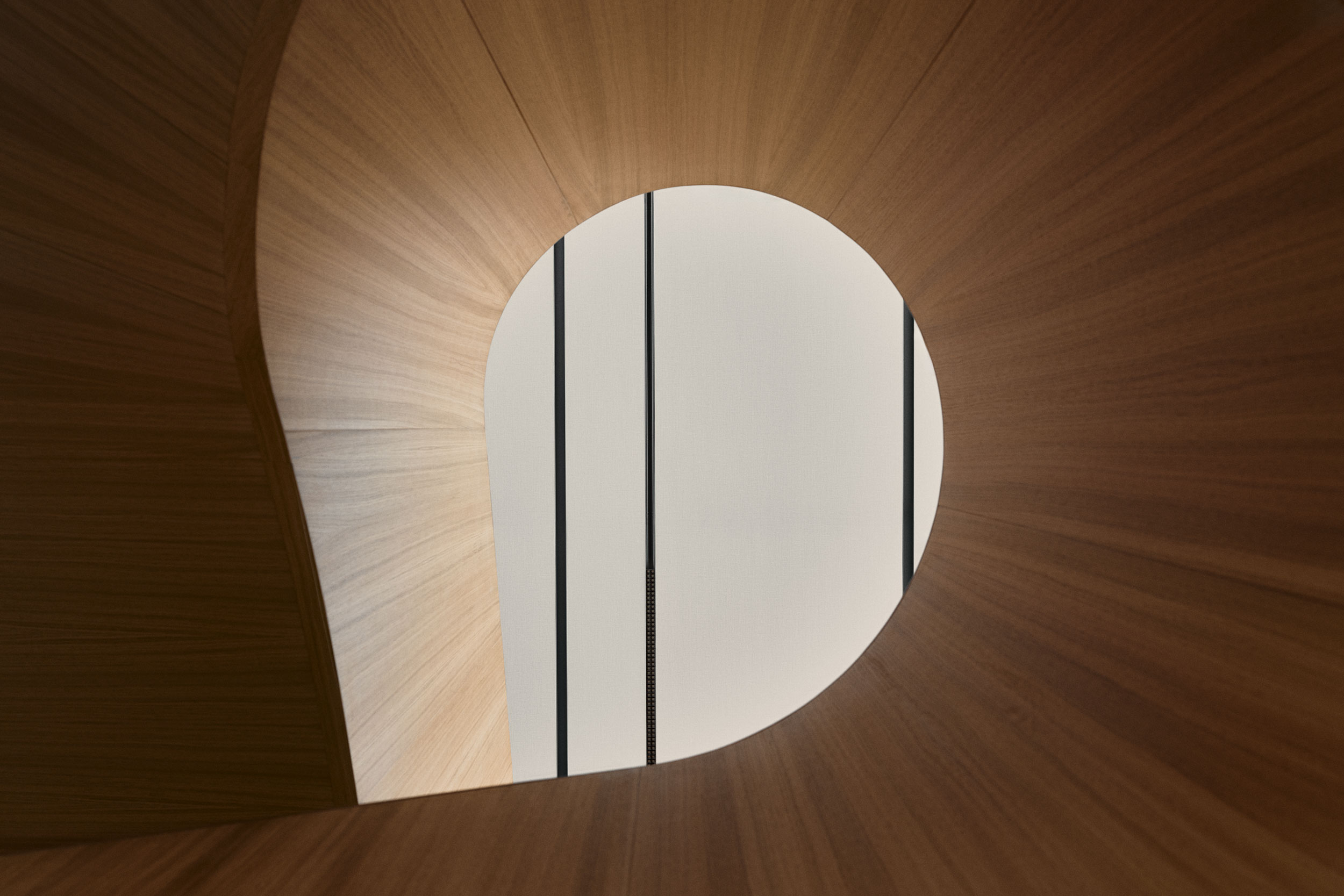 L’illuminazione non è solo un elemento funzionale. Crea atmosfera e dirige l’attenzione conferendo a ogni zona un’identità propria. Nei controsoffitti sono integrate due linee che si completano: i profili MOVE IT PRO in alluminio grezzo e un discreto sistema lineare che valorizza le superfici in legno e in sasso. Tutti i sistemi illuminotecnici sono integrati nel sistema di gestione dell’edificio per consentire ai paesaggi luminosi di adattarsi dinamicamente agli stimoli interni ed esterni. Nasce così un concetto di illuminazione tecnicamente avanzato ed emotivamente armonioso che valorizza sia l’architettura, sia l’esperienza delle persone.