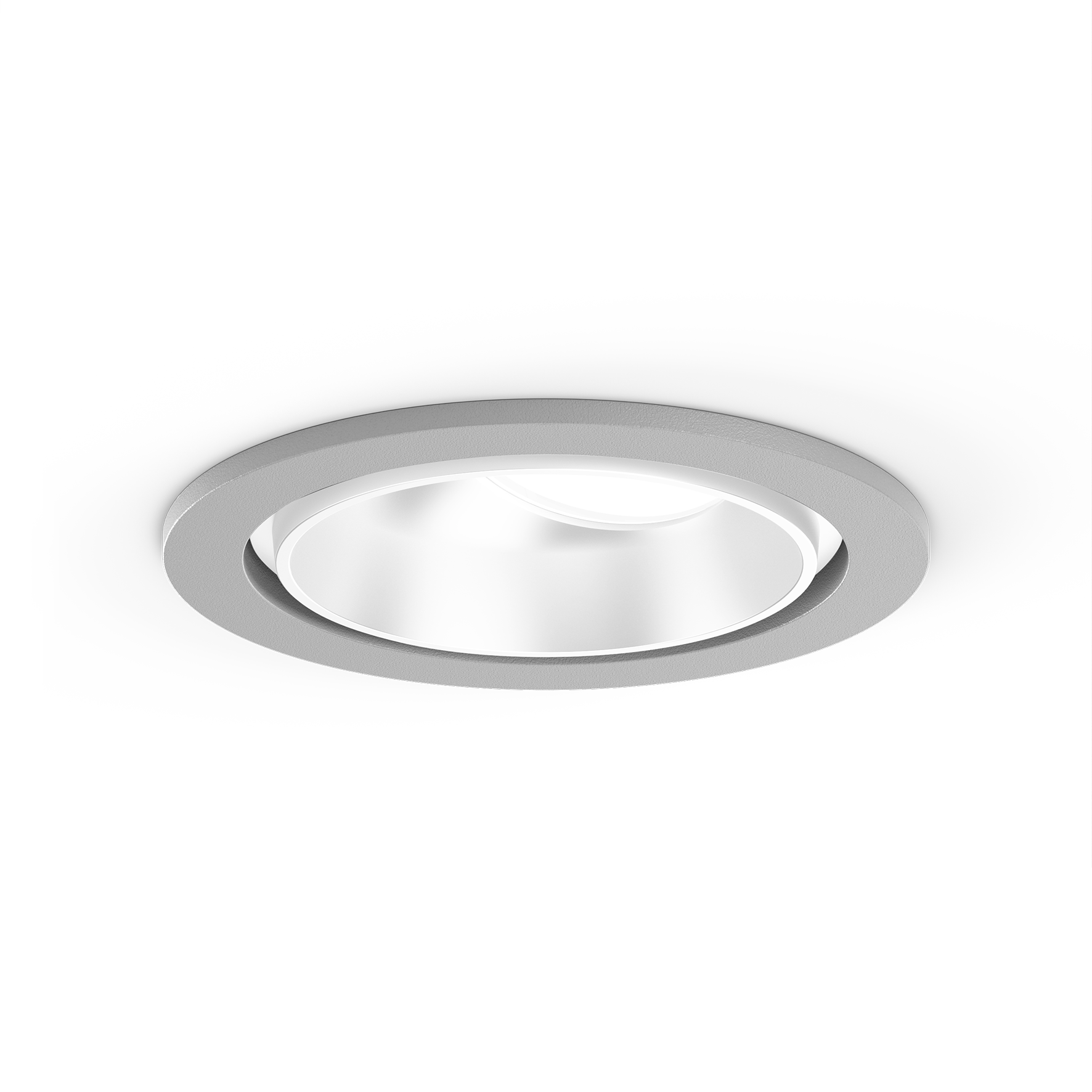 Faretto a incasso rotondo in alluminio pressofuso; a 1 luce; superficie bianco; girevole 360° e orientabile 30°; montaggio senza attrezzi con sistema brevettato a moschettone sferico; cassaforma rotondo; con bordo perimetrale alluminio bianco; adatto per soffitti con spessore di 2-25 mm; raffreddamento passivo del LED grazie alla geometria ottimizzata del dissipadore; con tecnologia COB (Chip on Board) per la massima efficienza; assenza di ombre multiple; colore della luce 4000 K; binning iniziale MacAdam ≤ 2 SDCM; CRI ≥ 90; LED a efficienza energetica con un'elevata resa cromatica; incl. ottica a lente di alta qualità; emissione precisa con angolo di emissione di 15°; UGR ≤ 19; classe di protezione IP40 in basso (IP20 in alto); classe isolamento 2; 220-240 V; incl. convertitore, non dimmerabile; sorgente luminosa sostituibile da tecnici specializzati autorizzati; dispositivo di controllo sostituibile da tecnici specializzati autorizzati;