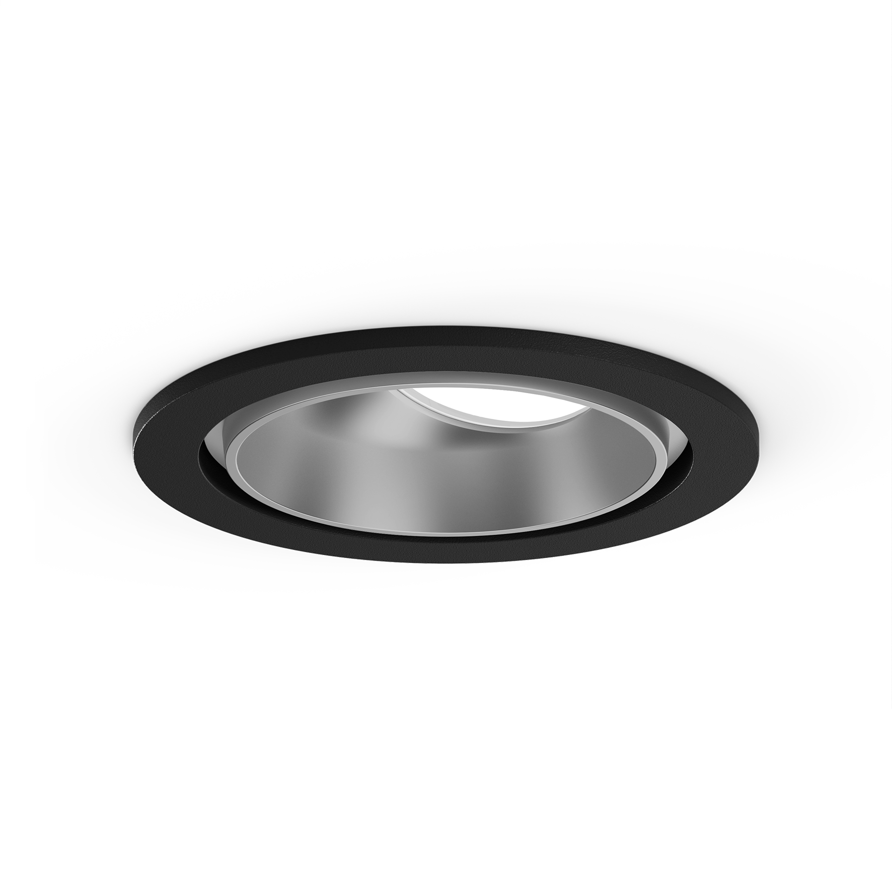 Faretto a incasso rotondo in alluminio pressofuso; a 1 luce; superficie argento opaco; girevole 360° e orientabile 30°; montaggio senza attrezzi con sistema brevettato a moschettone sferico; cassaforma rotondo; con bordo perimetrale nero intenso; adatto per soffitti con spessore di 2-25 mm; raffreddamento passivo del LED grazie alla geometria ottimizzata del dissipadore; con tecnologia COB (Chip on Board) per la massima efficienza; assenza di ombre multiple; colore della luce 4000 K; binning iniziale MacAdam ≤ 2 SDCM; CRI ≥ 90; 80 % min. del flusso luminoso dopo 50000 ore di esercizio; LED a efficienza energetica con un'elevata resa cromatica; incl. ottica a lente di alta qualità; emissione precisa con angolo di emissione di 54°; classe di protezione IP40 in basso (IP20 in alto); classe isolamento 2 220-240V; incl. convertitore DALI-2; sorgente luminosa sostituibile da tecnici specializzati autorizzati; dispositivo di controllo sostituibile da tecnici specializzati autorizzati;