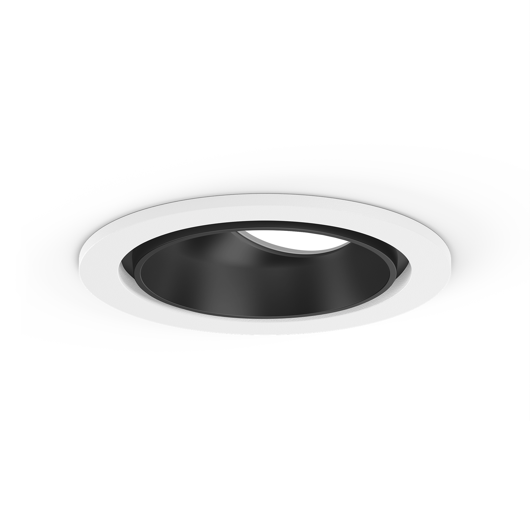 Faretto a incasso rotondo in alluminio pressofuso; a 1 luce; superficie nero; girevole 360° e orientabile 30°; montaggio senza attrezzi con sistema brevettato a moschettone sferico; cassaforma rotondo; con bordo perimetrale bianco traffico; adatto per soffitti con spessore di 2-25 mm; raffreddamento passivo del LED grazie alla geometria ottimizzata del dissipadore; con tecnologia COB (Chip on Board) per la massima efficienza; assenza di ombre multiple; colore della luce 2700 K; binning iniziale MacAdam ≤ 2 SDCM; CRI ≥ 90; LED a efficienza energetica con un'elevata resa cromatica; incl. ottica a lente di alta qualità; emissione precisa con angolo di emissione di 12°; UGR ≤ 13; classe di protezione IP40 in basso (IP20 in alto); classe isolamento 2; 220-240 V; incl. convertitore DALI-2; sorgente luminosa sostituibile da tecnici specializzati autorizzati; dispositivo di controllo sostituibile da tecnici specializzati autorizzati;