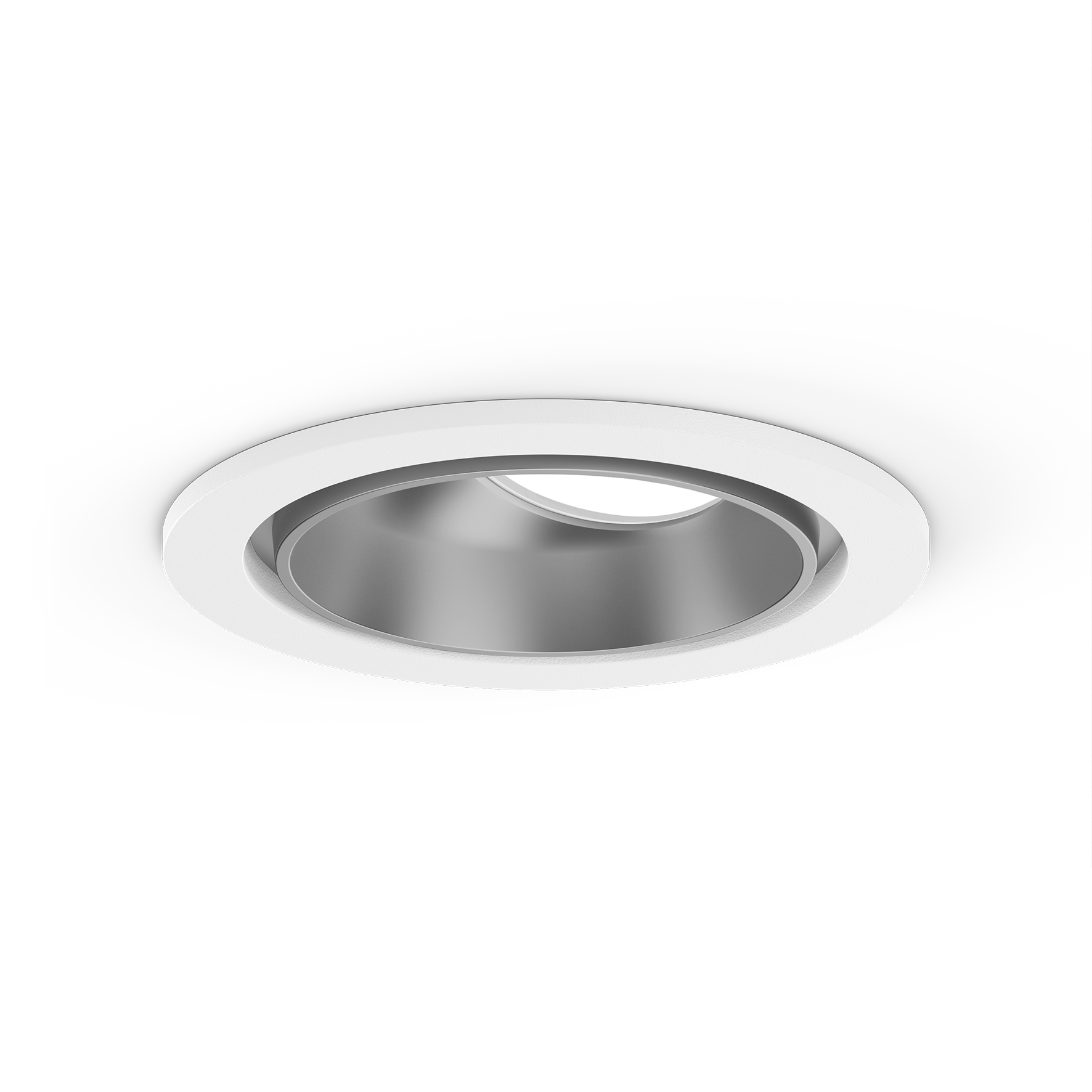 Faretto a incasso rotondo in alluminio pressofuso; a 1 luce; superficie argento opaco; girevole 360° e orientabile 30°; montaggio senza attrezzi con sistema brevettato a moschettone sferico; cassaforma rotondo; con bordo perimetrale bianco traffico; adatto per soffitti con spessore di 2-25 mm; raffreddamento passivo del LED grazie alla geometria ottimizzata del dissipadore; con tecnologia COB (Chip on Board) per la massima efficienza; assenza di ombre multiple; colore della luce 4000 K; binning iniziale MacAdam ≤ 2 SDCM; CRI ≥ 90; 80 % min. del flusso luminoso dopo 50000 ore di esercizio; LED a efficienza energetica con un'elevata resa cromatica; incl. ottica a lente di alta qualità; emissione precisa con angolo di emissione di 54°; classe di protezione IP40 in basso (IP20 in alto); classe isolamento 2; 220-240 V; incl. convertitore DALI-2; sorgente luminosa sostituibile da tecnici specializzati autorizzati; dispositivo di controllo sostituibile da tecnici specializzati autorizzati;