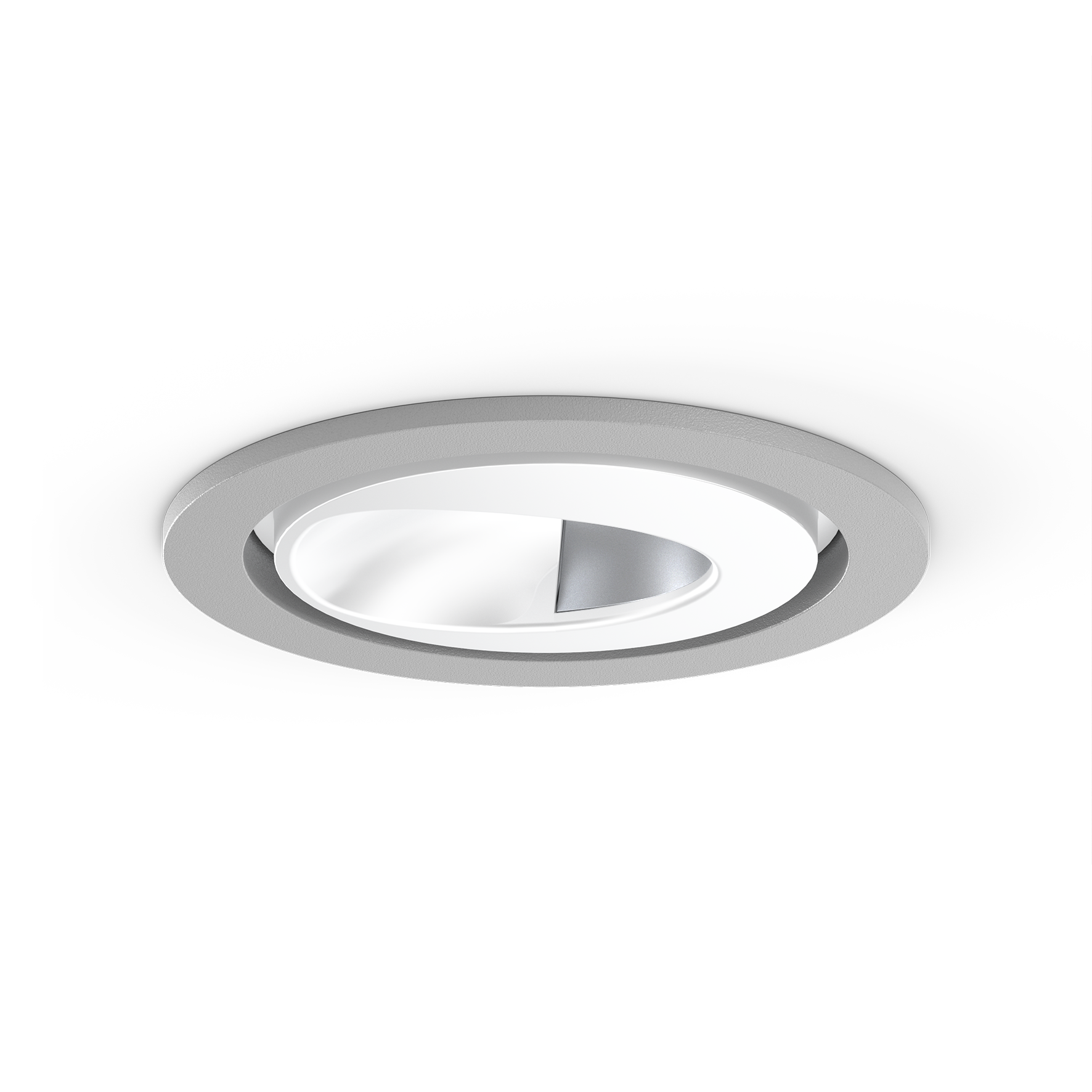 Faretto a incasso rotondo in alluminio pressofuso; a 1 luce; superficie bianco; girevole 360°; montaggio senza attrezzi con sistema brevettato a moschettone sferico; cassaforma rotondo; con bordo perimetrale alluminio bianco; adatto per soffitti con spessore di 2-25 mm; raffreddamento passivo del LED grazie alla geometria ottimizzata del dissipadore; assenza di ombre multiple; colore della luce 2700 K; binning iniziale MacAdam ≤ 3 SDCM; CRI ≥ 90; 80 % min. del flusso luminoso dopo 50000 ore di esercizio; LED a efficienza energetica con un'elevata resa cromatica; con riflettore asimmetrico appositamente calcolato per illuminazione verticale omogenea; riflettore di alta qualità con superficie sfaccettata in alluminio vaporizzato; classe isolamento 2; 220-240 V; incl. convertitore DALI-2; sorgente luminosa sostituibile da tecnici specializzati autorizzati; dispositivo di controllo sostituibile da tecnici specializzati autorizzati;