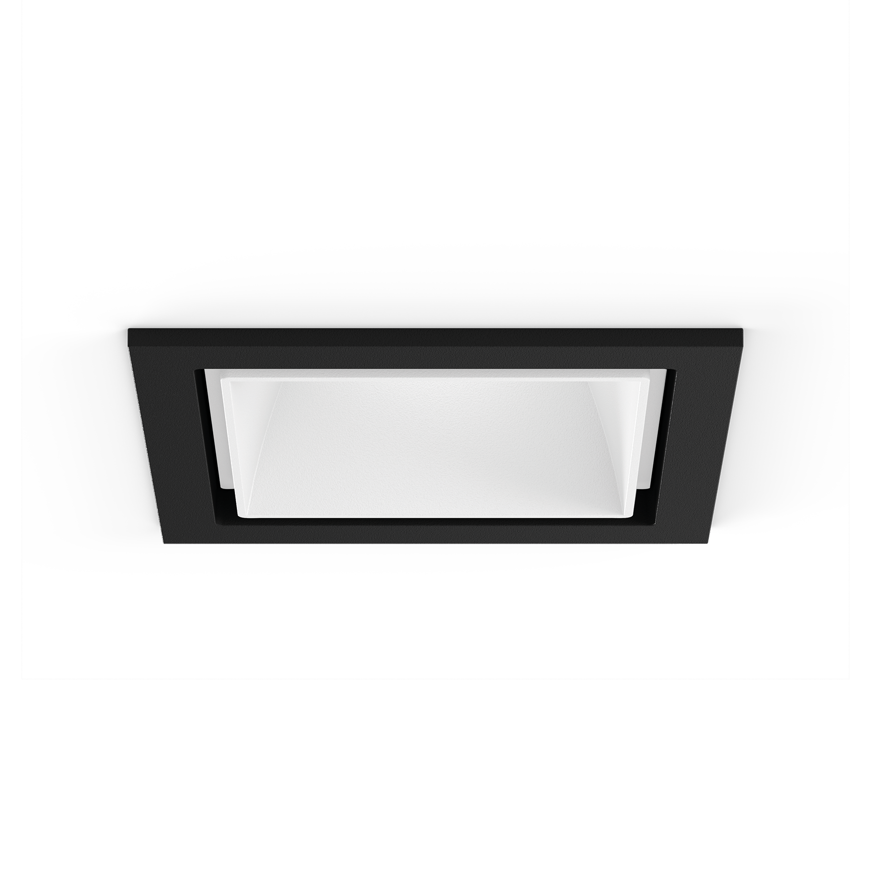 Faro da incasso quadrato in alluminio pressofuso; a 1 luce; superficie bianco; montaggio senza attrezzi con sistema brevettato a moschettone sferico; cassaforma quadrata; con bordo perimetrale nero intenso; adatto per soffitti con spessore di 2-25 mm; raffreddamento passivo del LED grazie alla geometria ottimizzata del dissipadore; con tecnologia COB (Chip on Board) per la massima efficienza; assenza di ombre multiple; colore della luce 4000 K; binning iniziale MacAdam ≤ 2 SDCM; CRI ≥ 90; 80 % min. del flusso luminoso dopo 50000 ore di esercizio; LED a efficienza energetica con un'elevata resa cromatica; incl. ottica a lente di alta qualità; emissione precisa con angolo di emissione di 44°; classe di protezione IP44 in basso (IP20 in alto); classe isolamento 2 220-240V; incl. convertitore DALI-2; scatola di allacciamento per cablaggio passante, tripolare o pentapolare, disponibile come accessorio; accessorio indicato a parte; sorgente luminosa sostituibile da tecnici specializzati autorizzati; dispositivo di controllo sostituibile da tecnici specializzati autorizzati;
