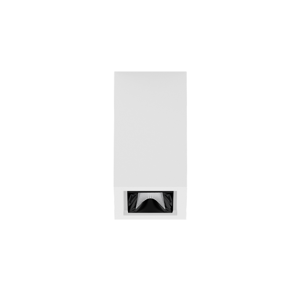 Downlight multiplo quadrato in alluminio con montaggio a superficie; corpo illuminante montabile ad appoggio senza attrezzi su piastra di montaggio tramite blocco di sicurezza; convertitore integrato nel corpo illuminante; superficie verniciata a polveri bianco traffico; dotato di un'ottica wide flood round; distribuzione simmetrica della luce con precise caratteristiche di emissione, angolo di emissione di 72°; riflettore di alta qualità con superficie sfaccettata in alluminio vaporizzato; Riflettore nero; raffreddamento passivo del LED grazie alla geometria ottimizzata del dissipadore; colore della luce 3000 K; ≤ 3 SDCM (initial MacAdam); CRI ≥ 90; 90 % min. del flusso luminoso dopo 50000 h di durata di vita; LED high power a risparmio energetico con ottima resa cromatica; grado protezione IP20; classe isolamento 1; 220-240 V; incl. convertitore, non dimmerabile; sorgente luminosa non sostituibile; dispositivo di controllo sostituibile da tecnici specializzati autorizzati; senza distorsione;