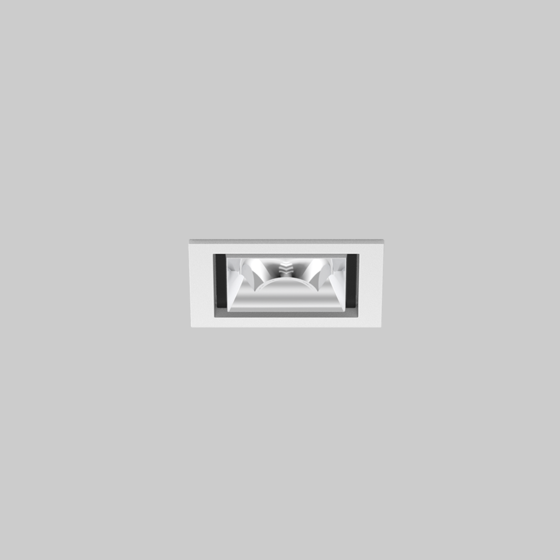 Downlight multiplo quadrato da incasso in alluminio pressofuso; montaggio senza attrezzi con sistema brevettato a moschettone sferico; cassaforma quadrata; con bordo perimetrale bianco traffico; adatto per soffitti con spessore di 2-25 mm; dotato di un'ottica wallwasher floor; distribuzione asimmetrica della luce con precise caratteristiche di emissione; riflettore di alta qualità con superficie sfaccettata in alluminio vaporizzato; riflettore cromato; raffreddamento passivo del LED grazie alla geometria ottimizzata del dissipadore; colore della luce 2700 K; ≤ 3 SDCM (initial MacAdam); CRI ≥ 90; 90 % min. del flusso luminoso dopo 50000 h di durata di vita; LED high power a risparmio energetico con ottima resa cromatica; grado protezione IP20; classe isolamento 2; incl. convertitore, non dimmerabile; sorgente luminosa non sostituibile; dispositivo di controllo sostituibile da tecnici specializzati autorizzati; senza distorsione;