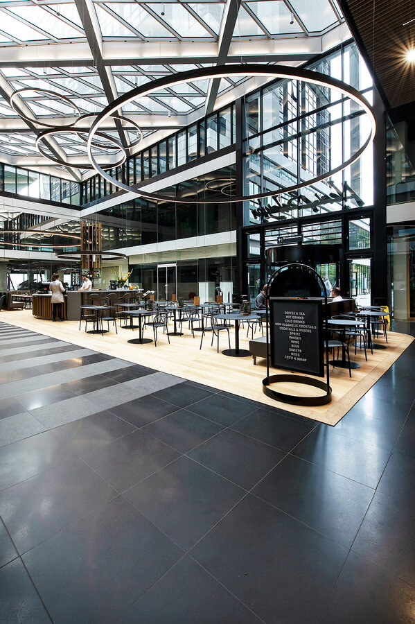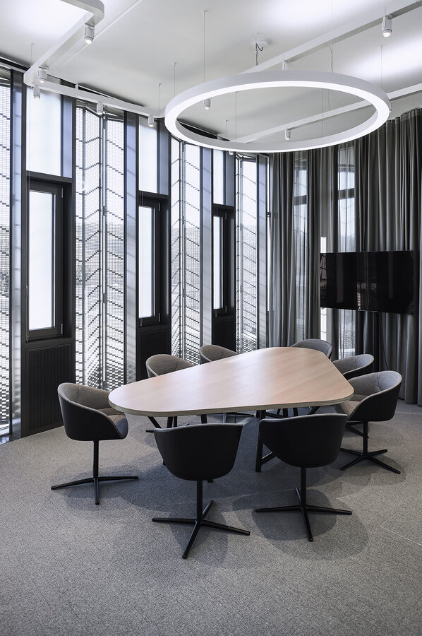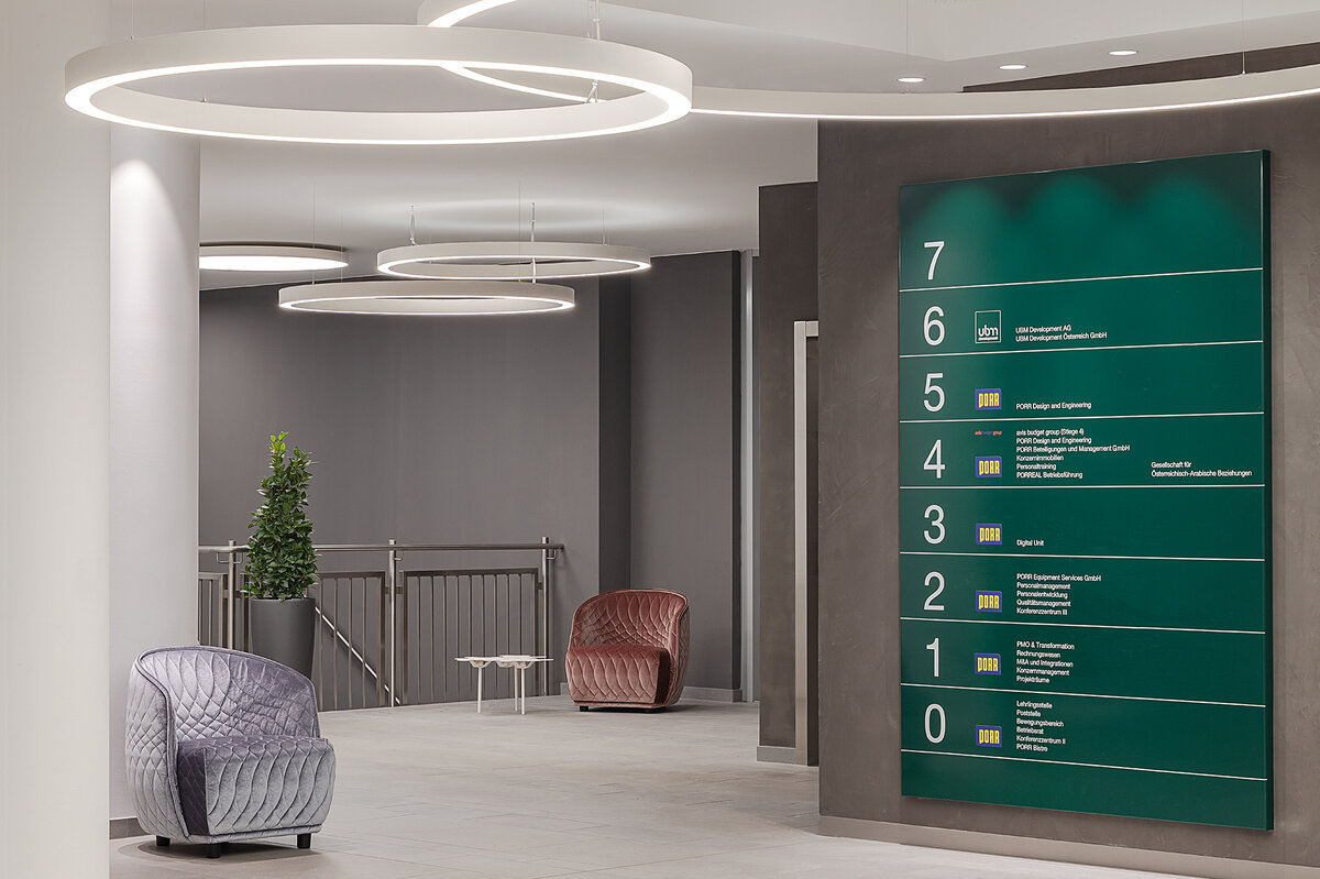 Corpo illuminante circolare in profilo di alluminio estruso rullato e senza punti di saldatura; verniciatura a polvere; sospeso con cavo a sospensione; altezza regolabile sull’apparecchio, senza utensili; incl. cavo di alimentazione; unità d’illuminazione ini alluminio pressofuso con verniciatura altamente riflettente per gestione termica migliorata; diffusore HPO (High Performance Opal) per un’illuminazione omogenea; rifrattore in PMMA a microprismi incl. pellicola di diffusione per ridurre la luminanza mantenendo l’illuminazione omogenea; in opzione con emissione diretta/indiretta per ulteriore accentuazione del soffitto e migliore comfort visivo; LED ad efficienza energetica con elevata resa cromatica; elementi fonoassorbente disponibile